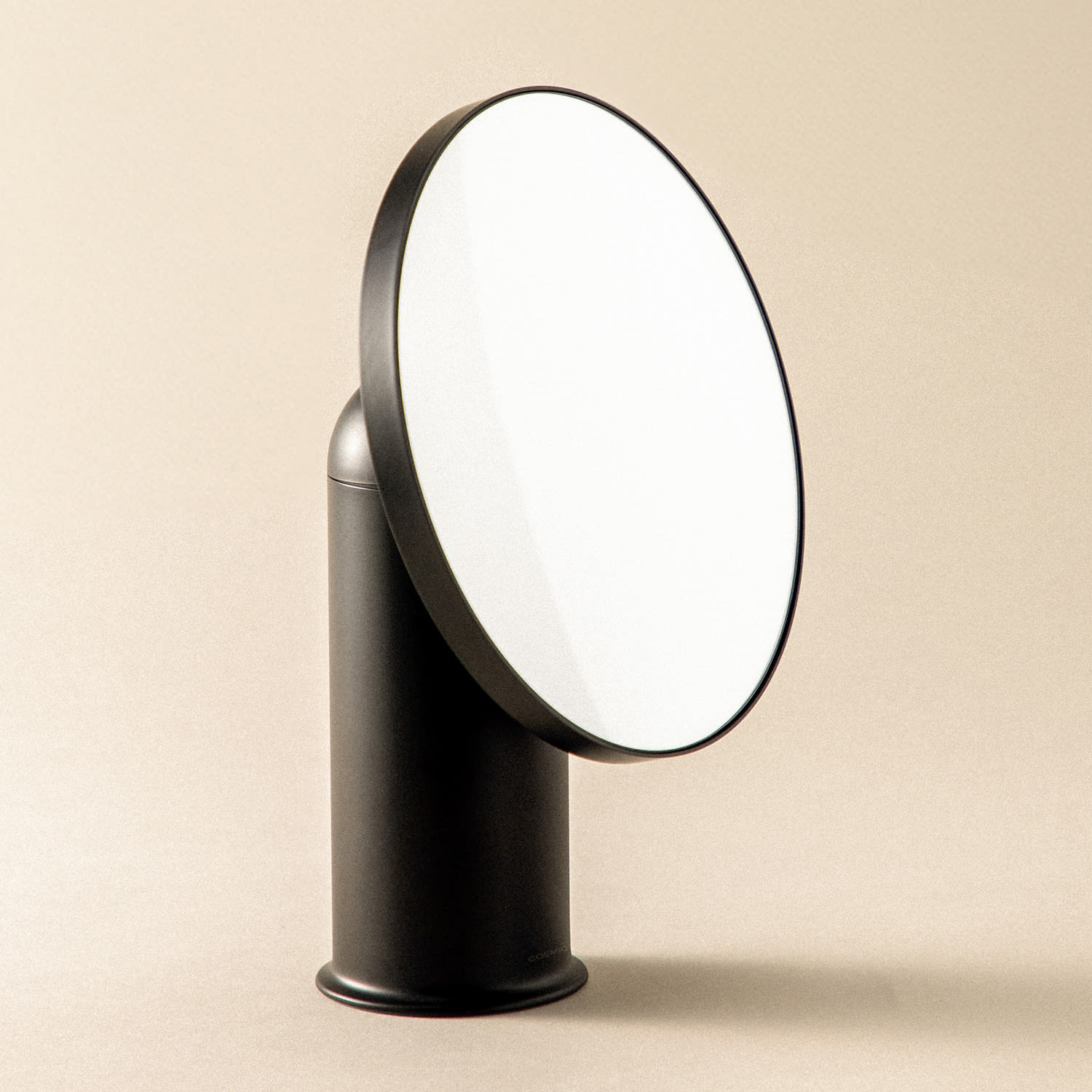 Runder Vergrößerungsspiegel mit 5-facher Vergrößerung. Ein unverzichtbares Accessoire, um die besten Ergebnisse bei Make-up, Rasur oder Gesichtshaarentfernung zu erzielen. Durch die vertikale Bewegung können Sie den Spiegel auf die gewünschte Höhe fokussieren. In mattem Schwarz gehalten, haben Sie das gleiche Modell in drei weiteren Ausführungen. Eine Ergänzung, die nicht installiert werden muss.