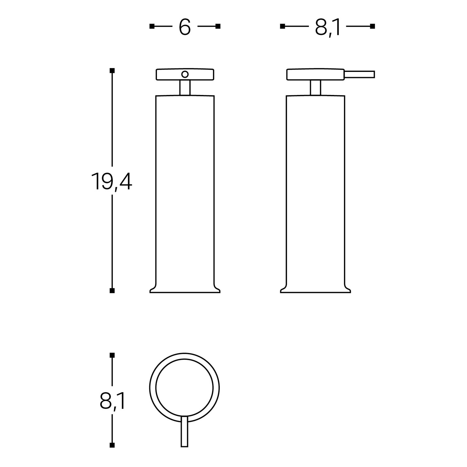 Flüssigseifenspender mit einem Fassungsvermögen von 185 ml. Dank seines schlanken Designs nimmt es wenig Platz ein. Sie sind in mattem Weiß gehalten und haben das gleiche Modell in drei weiteren Ausführungen. Korrosionsbeständig und leicht zu reinigen.