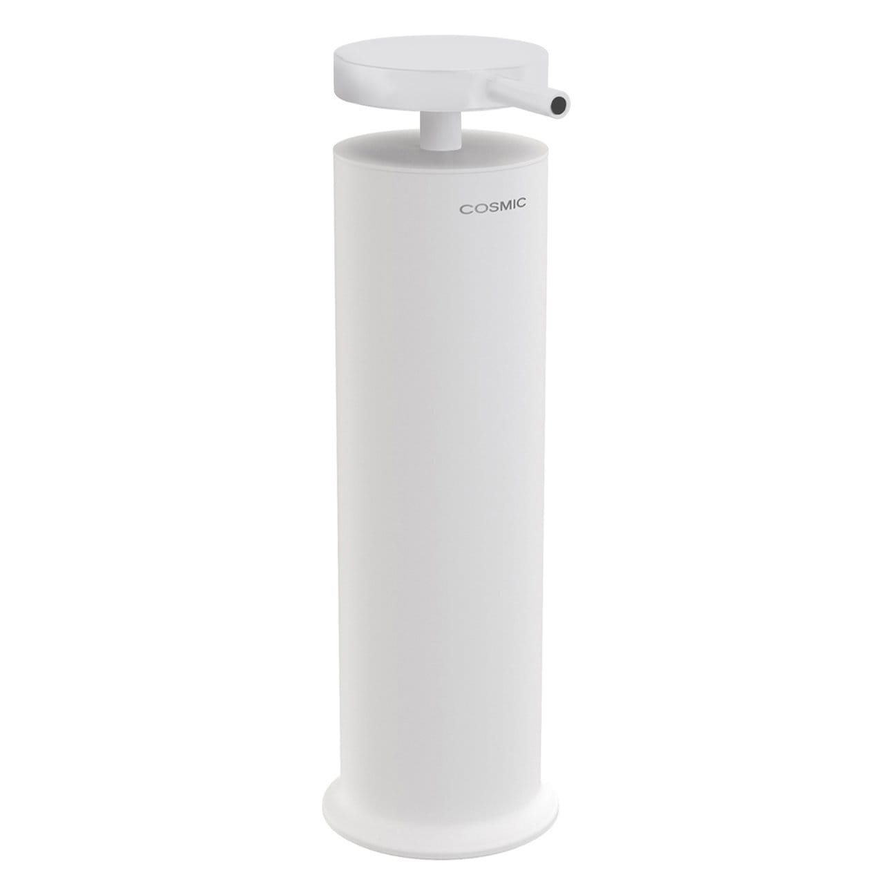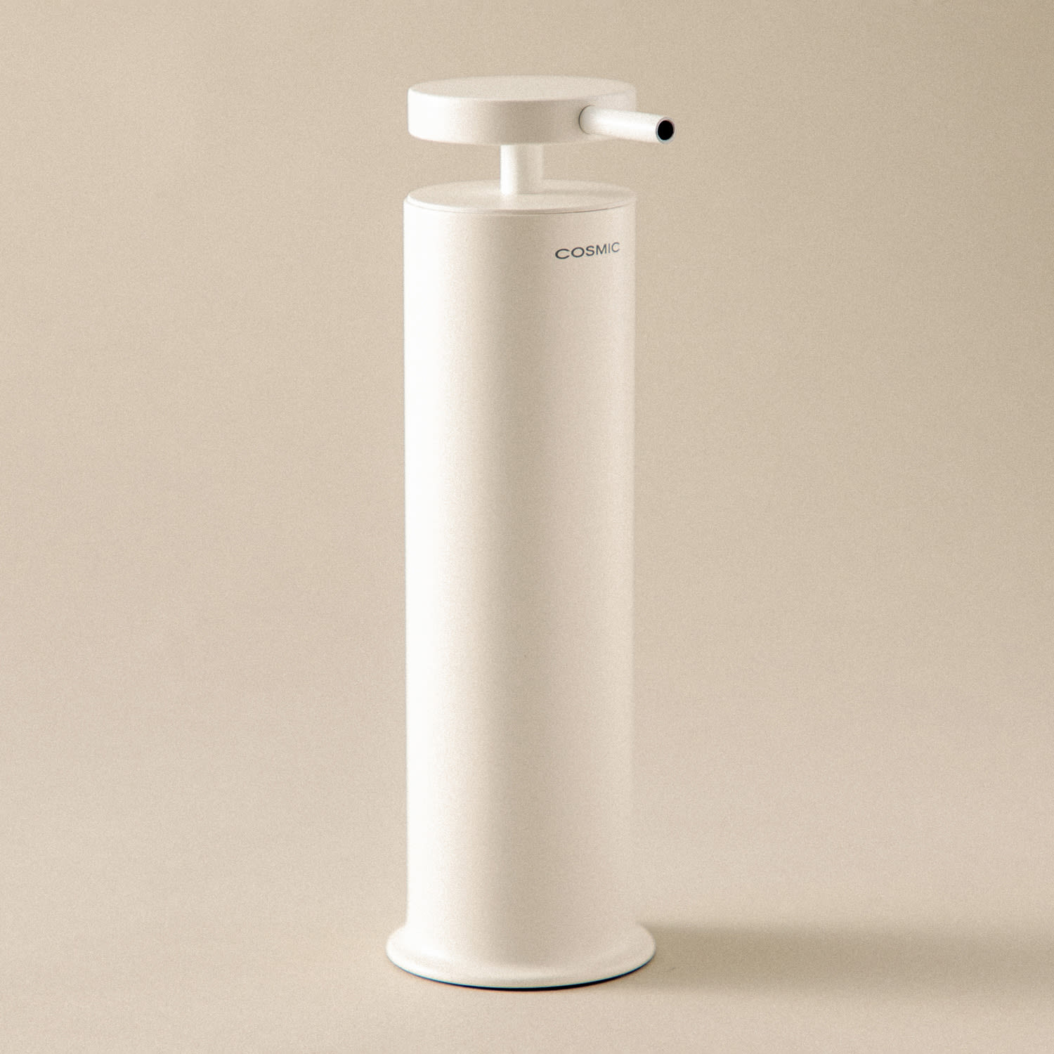 Dieser Spender ist Teil der Geyser-Kollektion von Cosmic. Der von Nahtrang entworfene Vorschlag ist eine Sammlung von Arbeitsplatten- und Bodenzubehör und ergänzt ein Design, das von Formen inspiriert ist, die wie Wasser fließen. Cosmic ist eine Marke, die sich auf Accessoires und Möbel für das Badezimmer spezialisiert hat und nach Innovationen sowohl bei Materialien als auch bei Designs sucht.