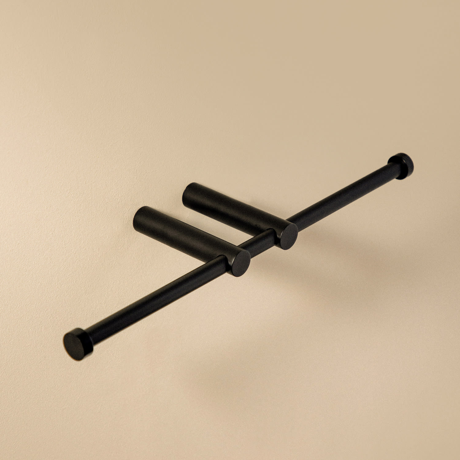 Doppelter Papierhalter ohne Abdeckung zur Montage an der Wand in mattschwarzer Ausführung. Sehr praktisches Zubehör, da das stabförmige Design einen einfachen Austausch der Rollen ermöglicht. Seine doppelte Kapazität ist ideal für Familienbäder oder intensive Nutzung. Auch möglich in glänzendem und mattem Edelstahl. Wenn Sie es vorziehen, die Toilettenpapierrolle versteckt zu haben. bietet Ihnen dieselbe Serie zwei Modelle von Papierhaltern mit Abdeckungen.