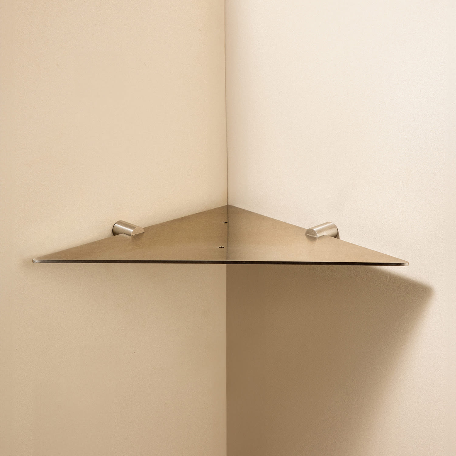 Die Eckablage besteht aus Edelstahl in einem matten Edelstahlfinish. Produkt mit 10 Jahren Garantie. Verwenden Sie zur Reinigung Seifenwasser, spülen Sie es mit viel Wasser ab und trocknen Sie es schließlich mit einem weichen Tuch oder Fensterleder ab. Verwenden Sie niemals starke Produkte, die Säuren, Bleichmittel oder Schleifmittel enthalten.