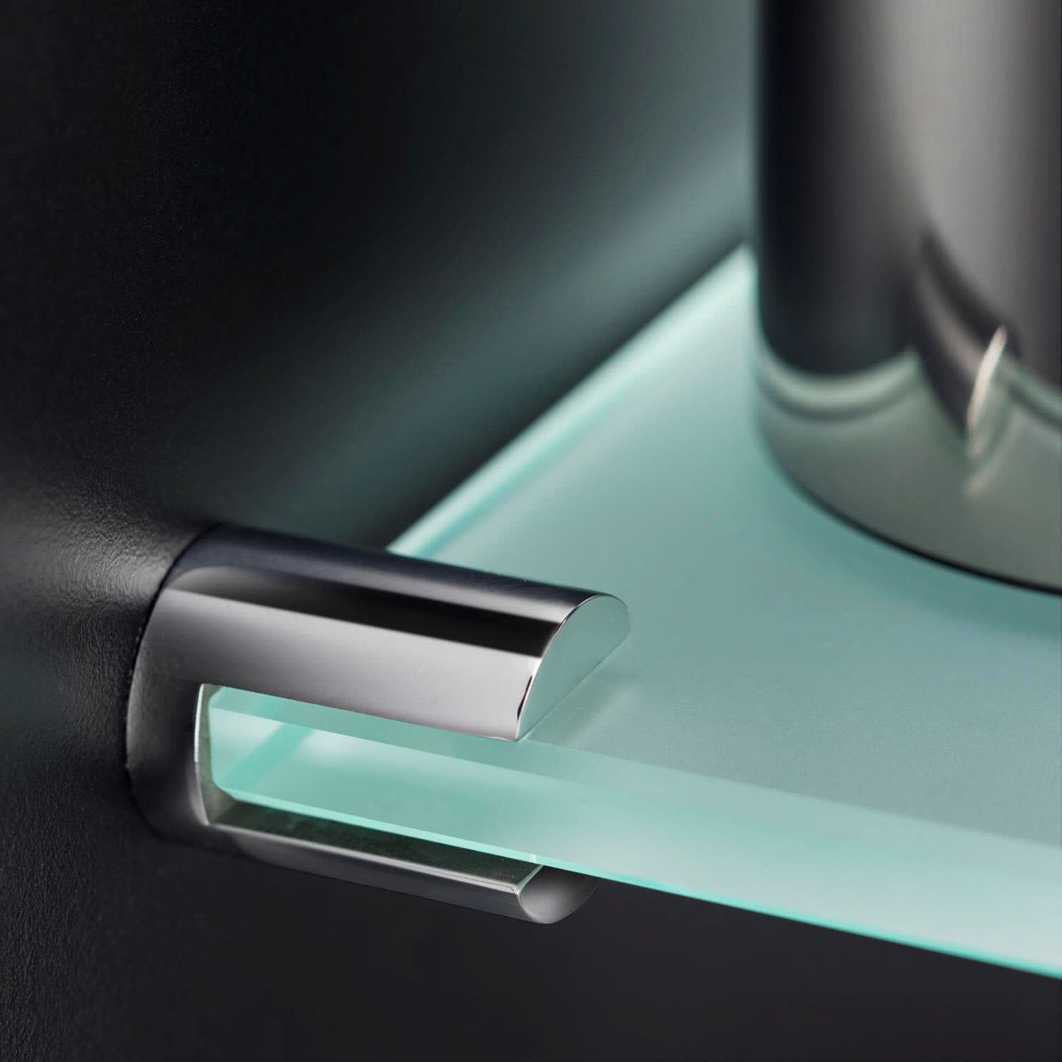 Dieser Glasablage ist Teil der Logic-Kollektion von Cosmic. Der von Cosmic Studio entworfene Vorschlag ist eine vollständige Sammlung von Badzubehör, das Grundformen für eine komfortable Badumgebung enthält.