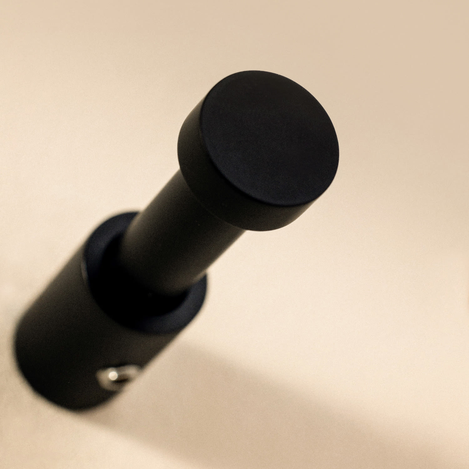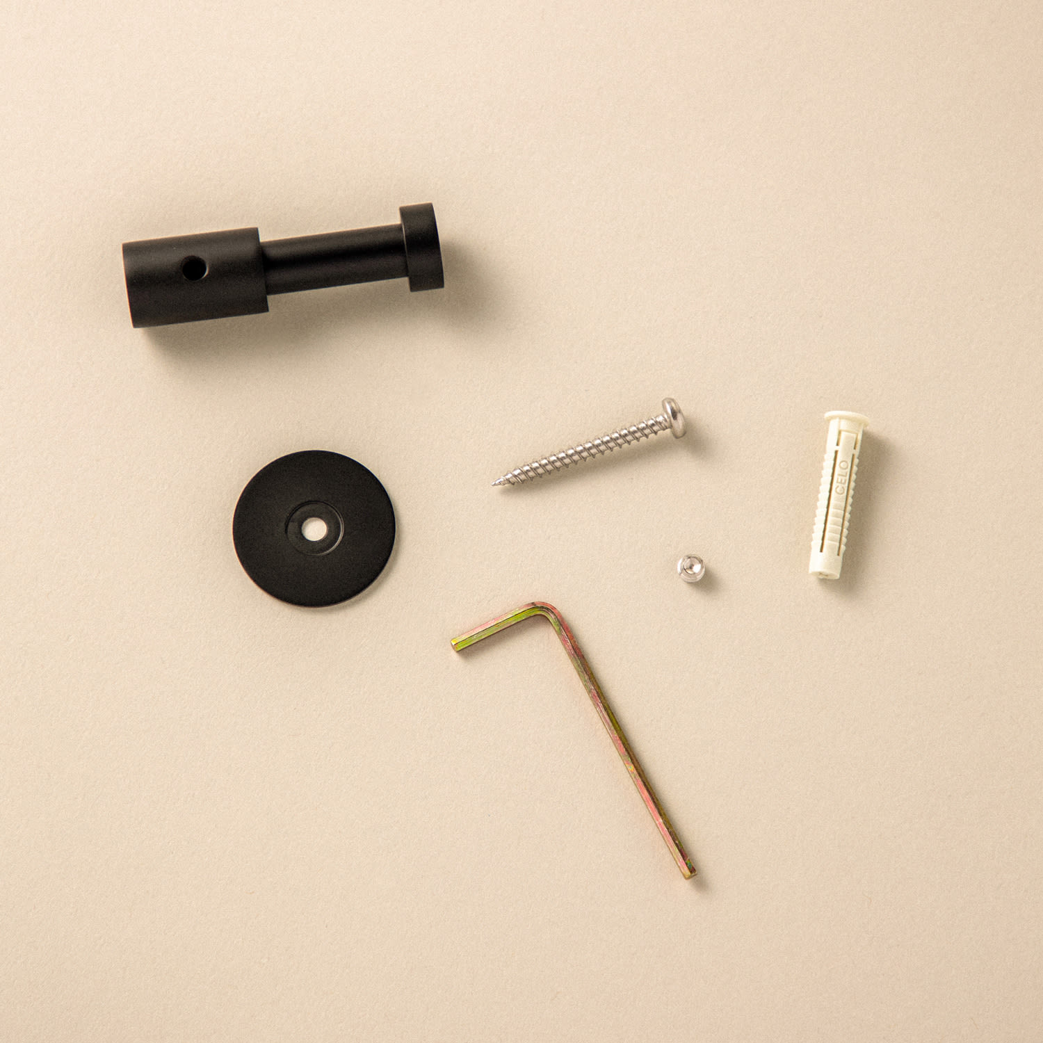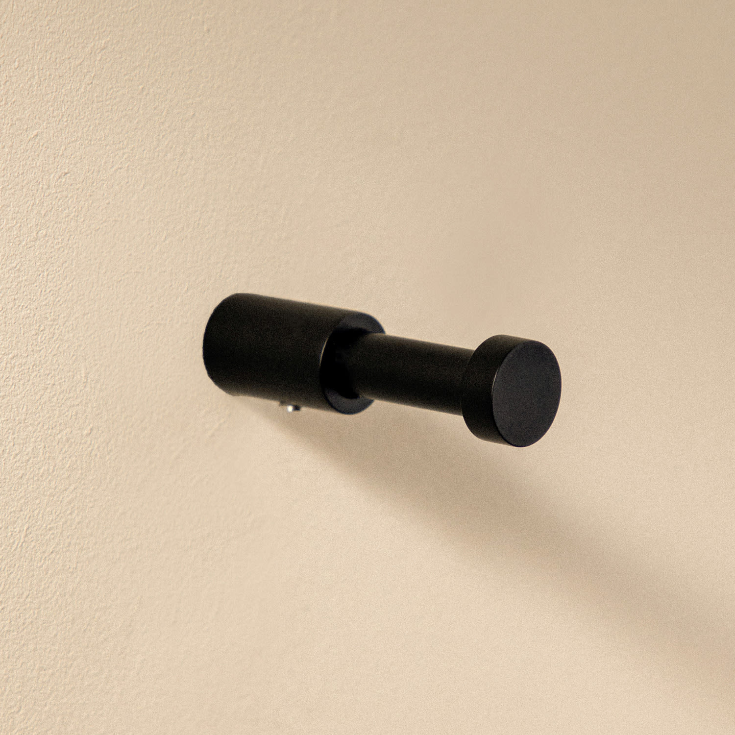 Der Haken besteht aus Edelstahl in einem mattschwarzen Finish. Produkt mit 10 Jahren Garantie. Verwenden Sie zur Reinigung Seifenwasser, spülen Sie es mit viel Wasser ab und trocknen Sie es schließlich mit einem weichen Tuch oder Fensterleder ab. Verwenden Sie niemals starke Produkte, die Säuren, Bleichmittel oder Schleifmittel enthalten.