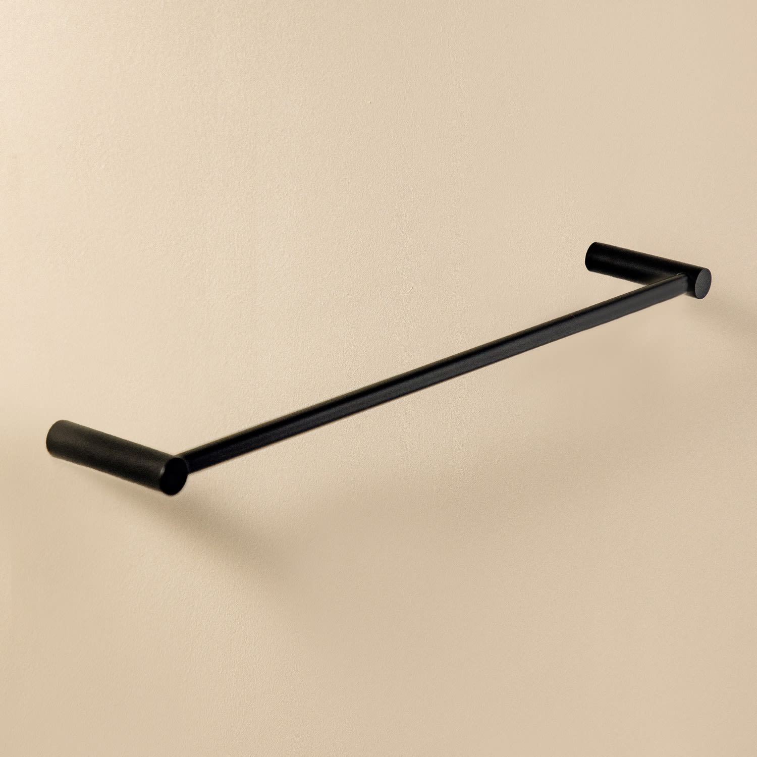 Fester starrer Badetuchhalter in mattschwarzer Ausführung. Auch möglich in glänzendem und mattem Edelstahl. Das gleiche Modell ist in anderen Größen erhältlich.