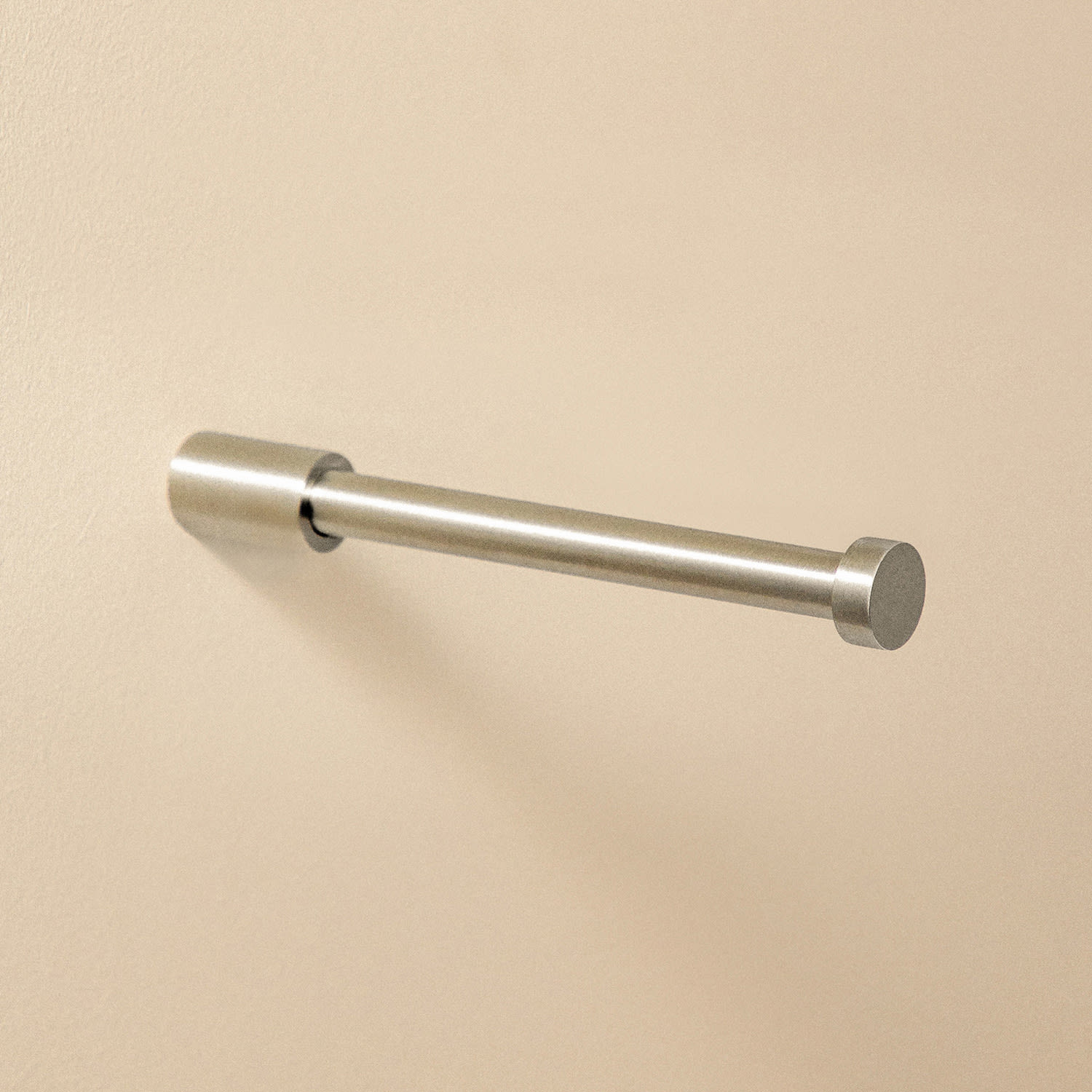 Papierhalter ohne Abdeckung zur Montage an der Wand in glänzendem Edelstahl. Ein sehr praktisches Zubehör mit röhrenförmiger Form, das den Austausch von Toilettenpapier erleichtert. Möglich auch in mattem Edelstahl und mattem Schwarz. Die Version mit Deckel ist ebenfalls erhältlich.