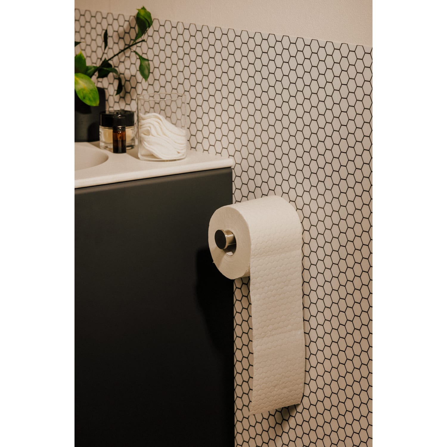 Dieser Rollenhalter ist Teil der Logic-Kollektion von Cosmic. Der von Cosmic Studio entworfene Vorschlag ist eine vollständige Sammlung von Badzubehör, das Grundformen für eine komfortable Badumgebung enthält.