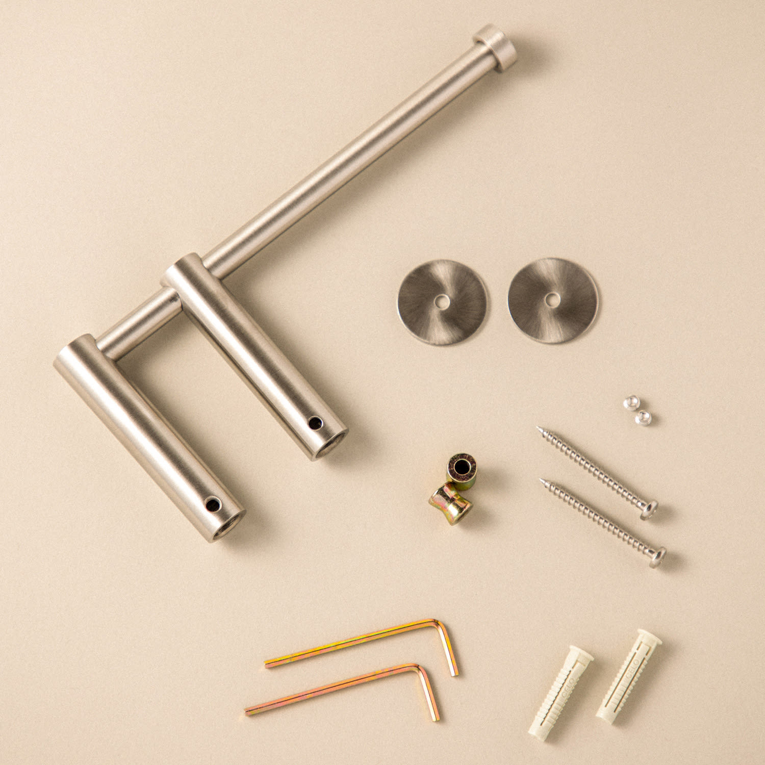 Der Papierhalter für das Badezimmer besteht aus Edelstahl in einer glänzenden Edelstahloberfläche. Produkt mit 10 Jahren Garantie. Verwenden Sie zur Reinigung Seifenwasser, spülen Sie es mit viel Wasser ab und trocknen Sie es schließlich mit einem weichen Tuch oder Fensterleder ab. Verwenden Sie niemals starke Produkte, die Säuren, Bleichmittel oder Schleifmittel enthalten.