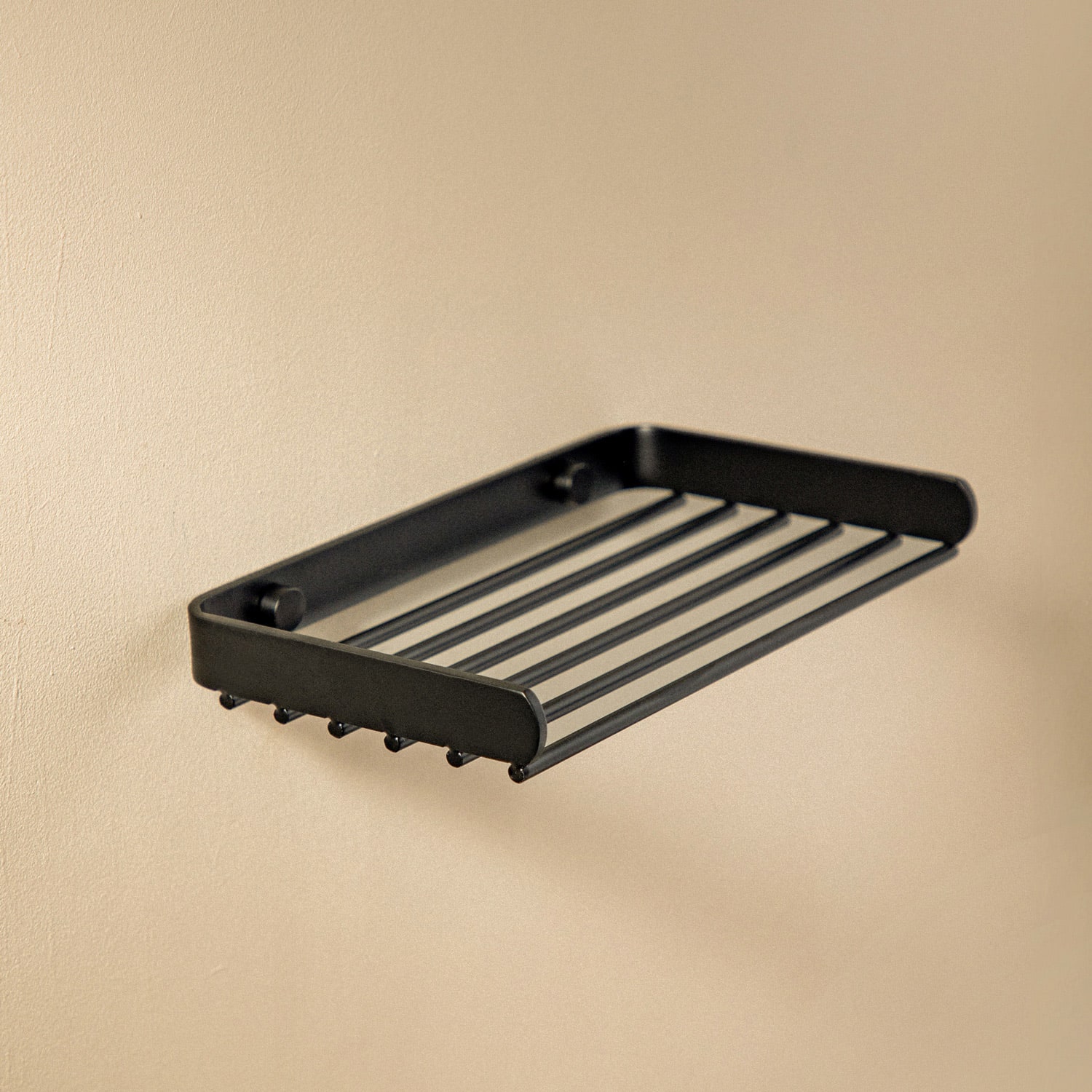 Mesh-Duschseifenschale zur Installation an die Wand. So haben Sie alles, was Sie für die Dusche benötigen, zur Hand, ohne viel Platz in Anspruch zu nehmen. In einem mattschwarzen Finish ist es auch in mattem Edelstahl erhältlich.