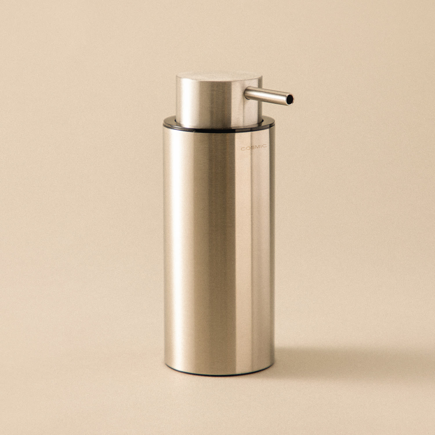 Der Seifenspender ist Teil der Logic-Kollektion von Cosmic. Der von Cosmic Studio entworfene Vorschlag ist eine vollständige Sammlung von Badzubehör, das Grundformen für eine komfortable Badumgebung enthält.