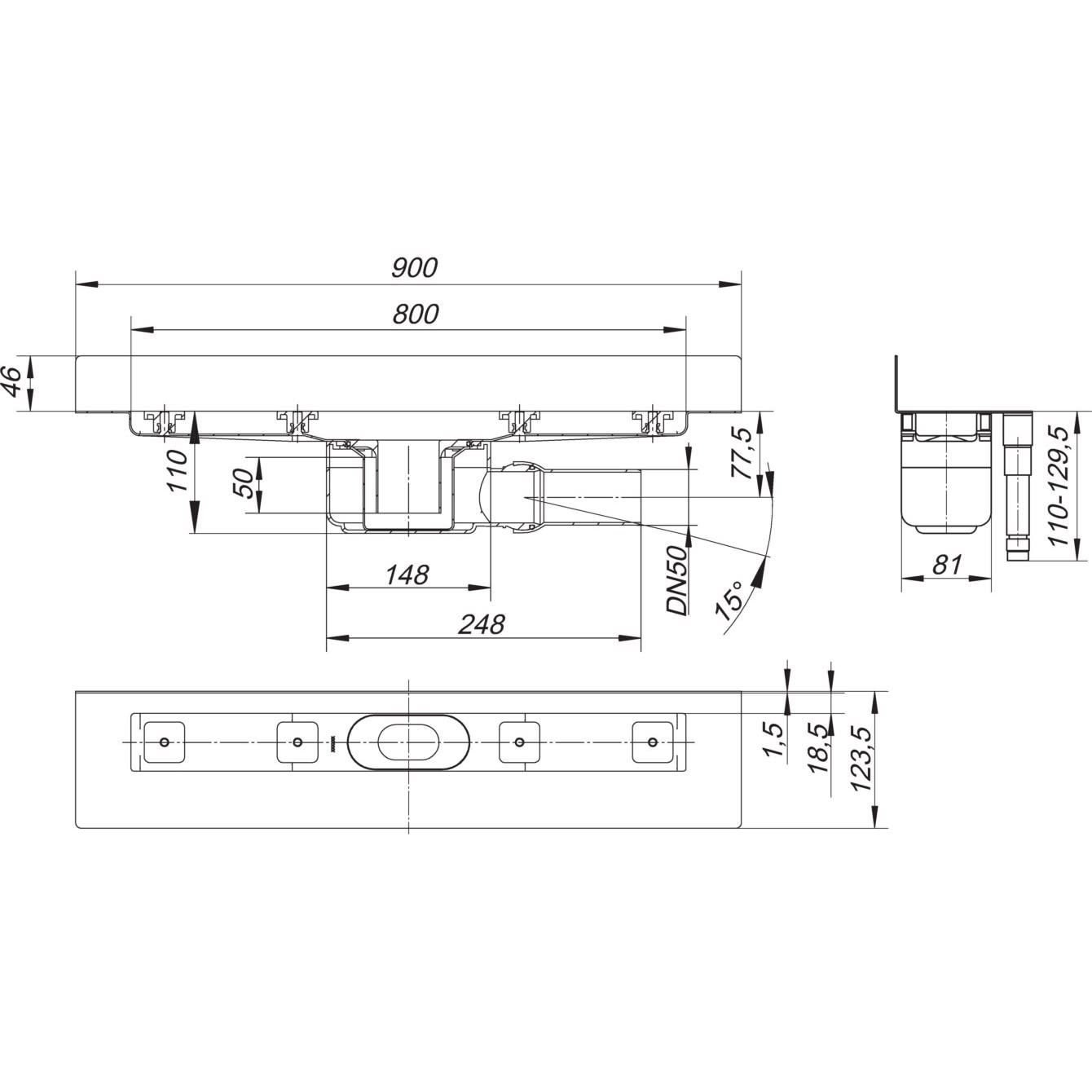 Dallmer CeraLine W Duschrinne 80 cm, DN 50