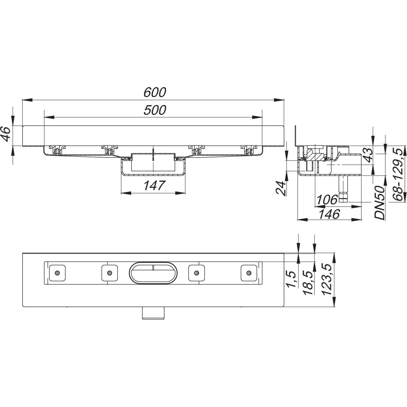 - Gesamtlänge 60 cm, Länge Ablaufrinne 50 cm