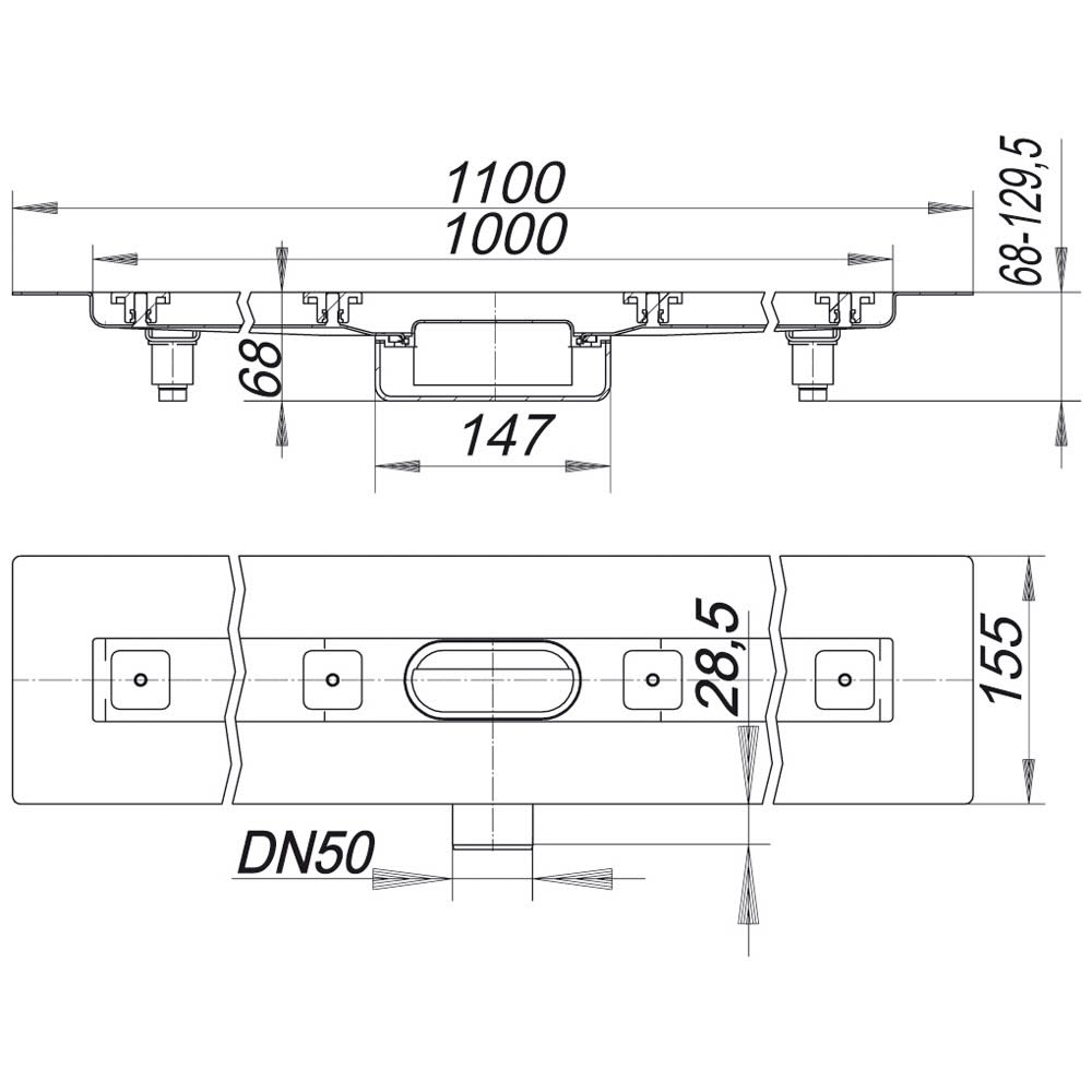 - Gesamtlänge 110 cm, Länge Ablaufrinne 100 cm