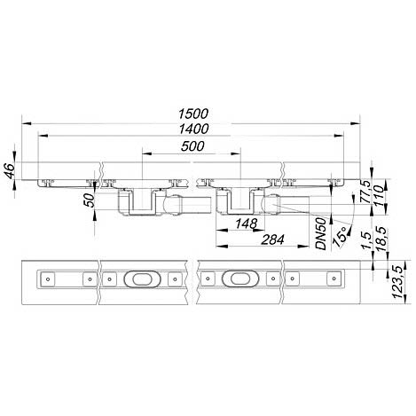 Dallmer CeraLine W Duo Duschrinne 140 cm, DN 50