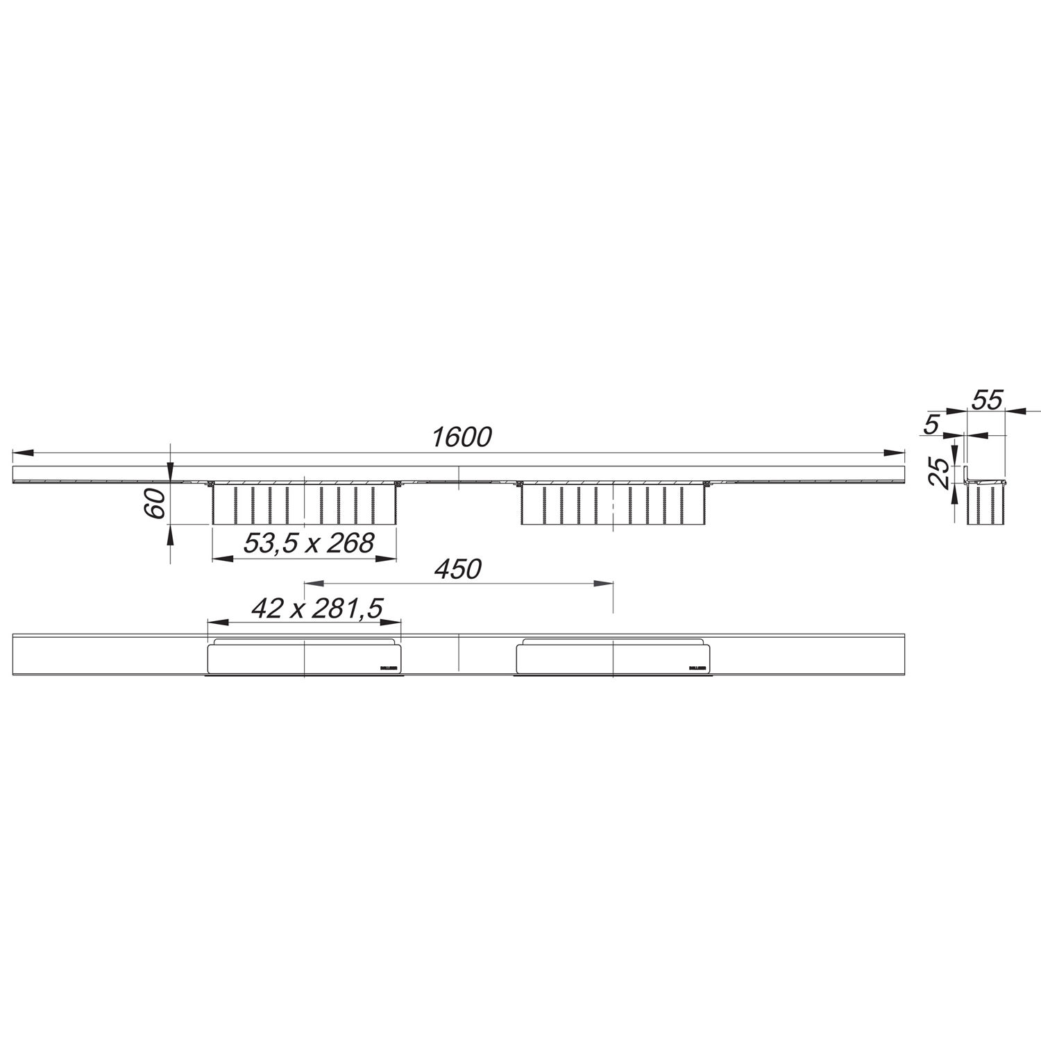 Dallmer Duschrinne CeraFloor Select Duo 160 cm