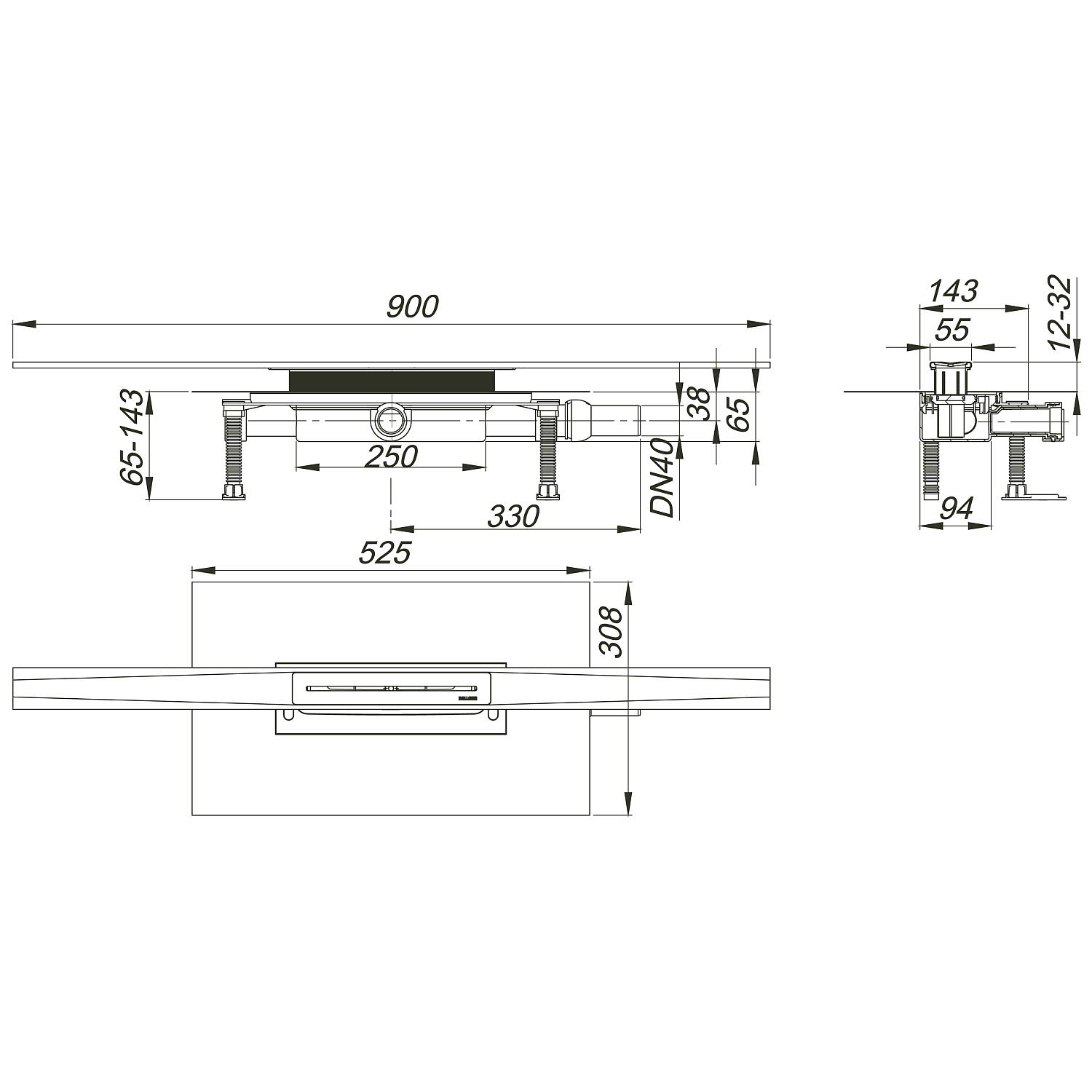 - Sperrwasserhöhe 5 cm (abweichend von DIN EN 1253)