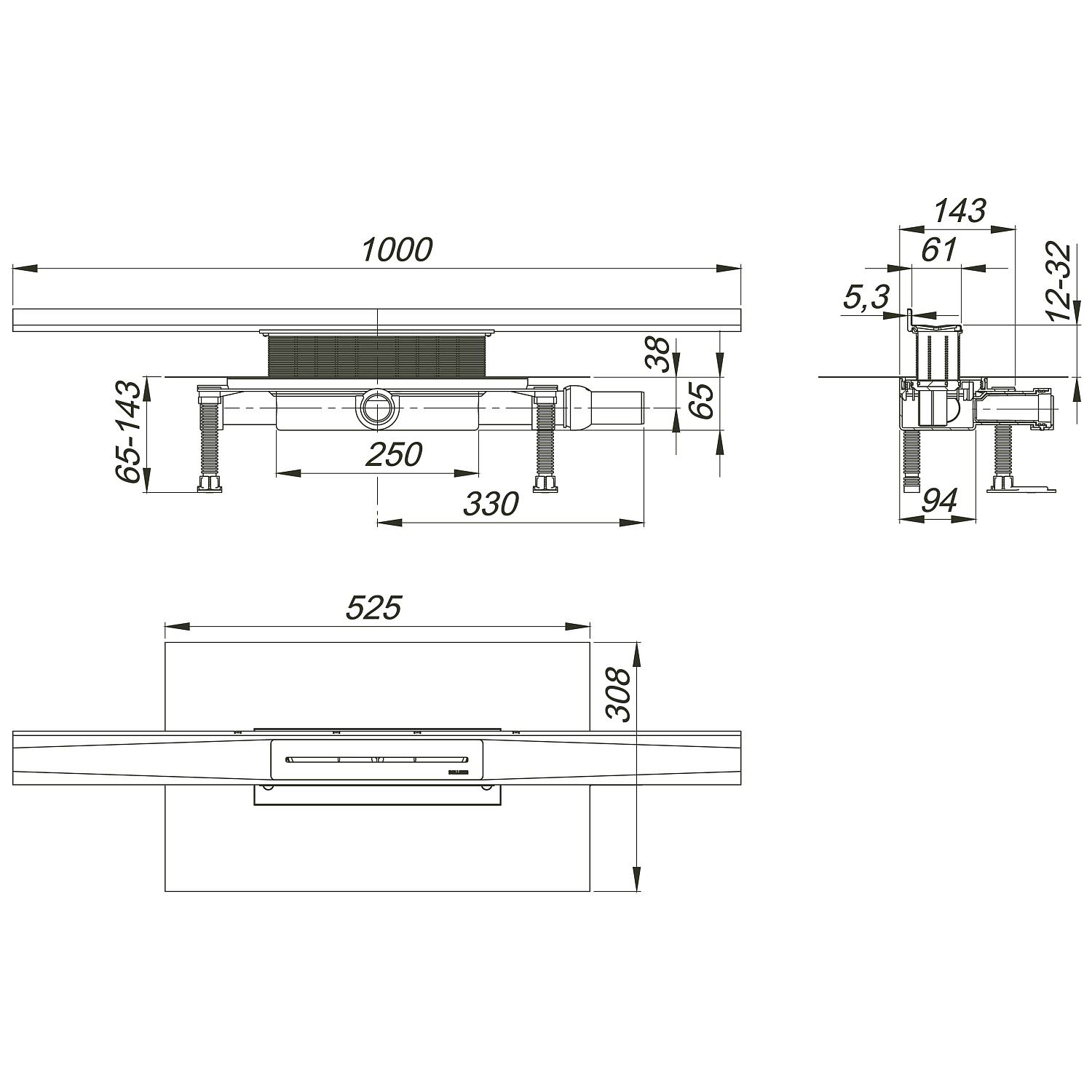 - Sperrwasserhöhe 5 cm (abweichend von DIN EN 1253)