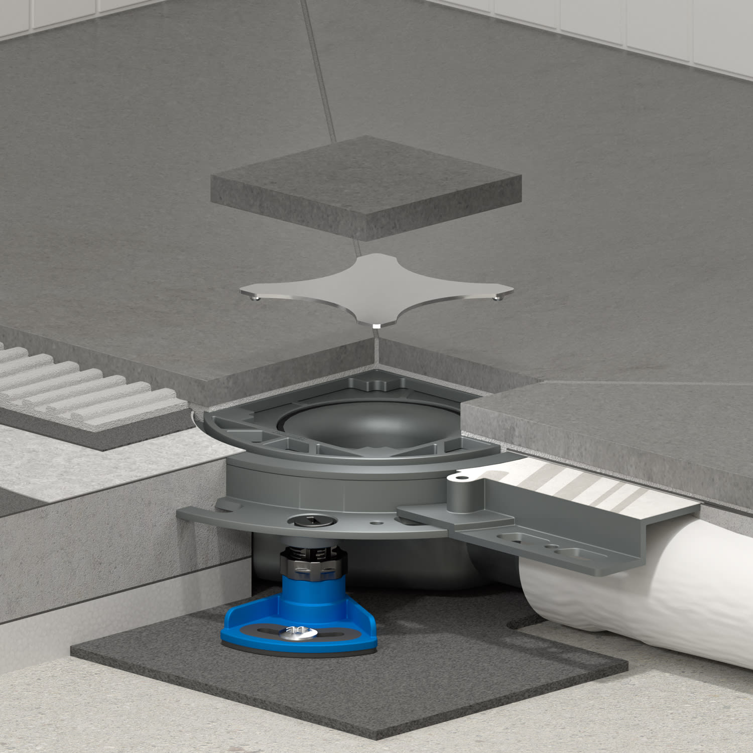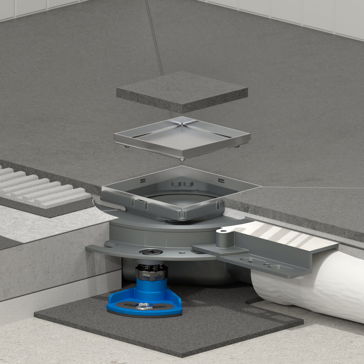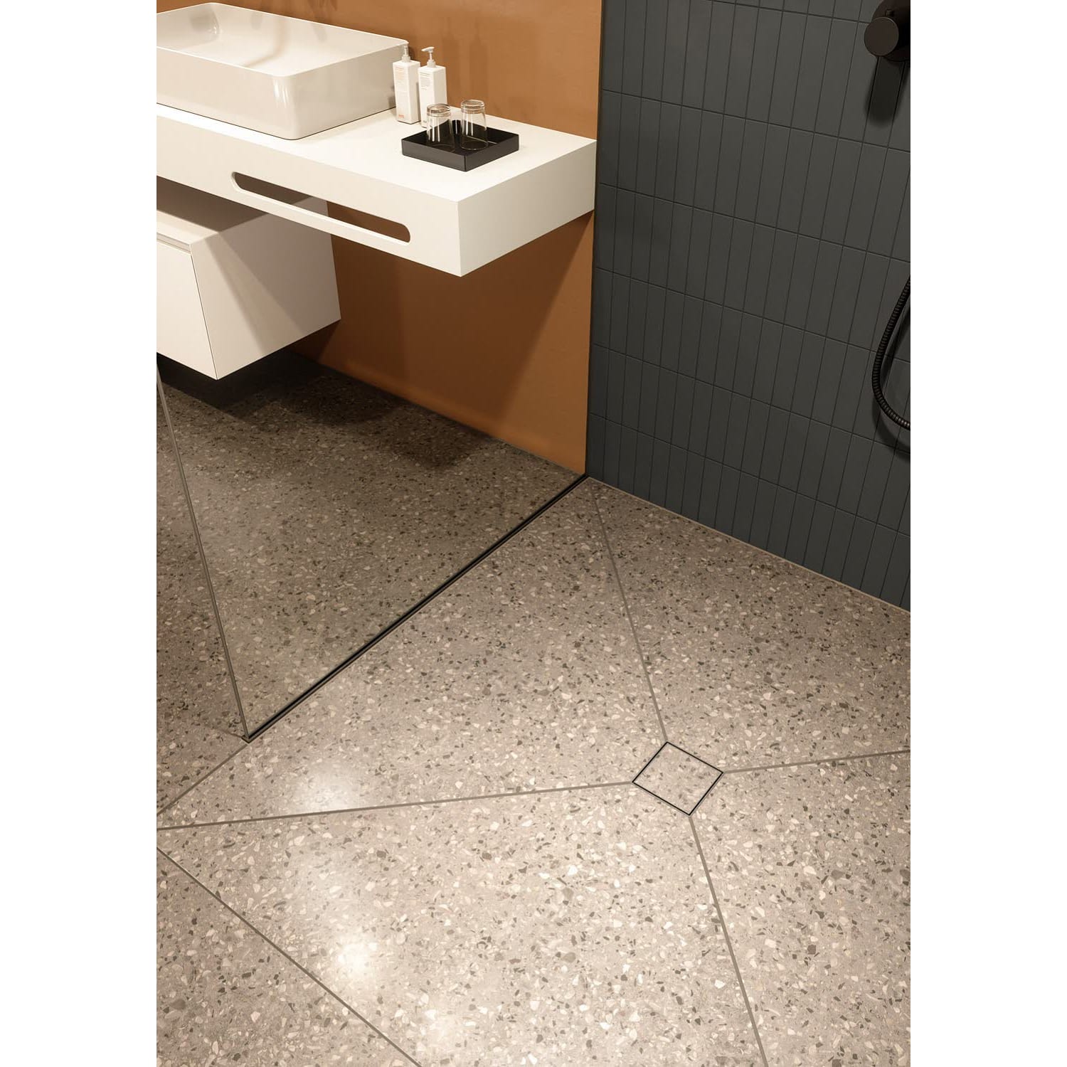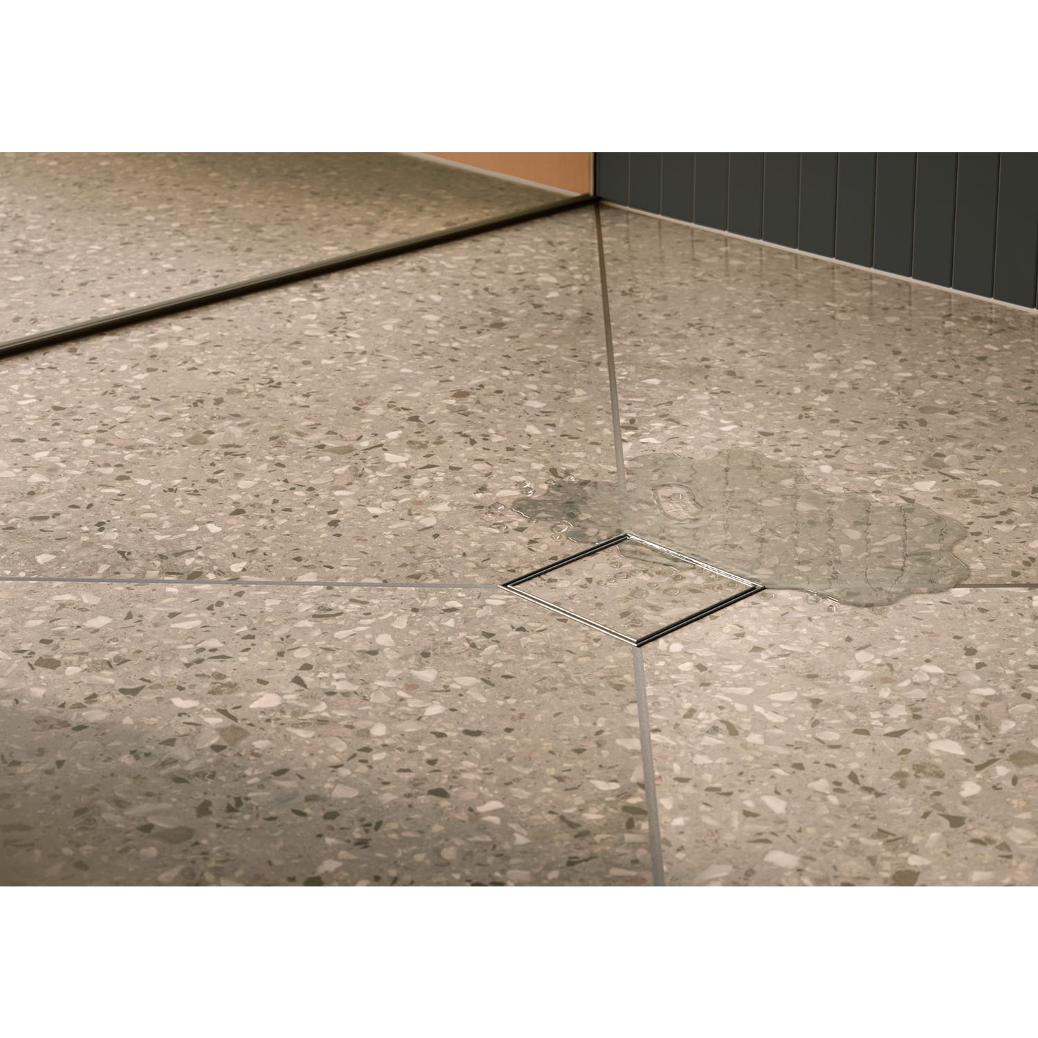 - Bodenablauf inklusive Aufsatz mit Edelstahlrahmen zum Befliesen mit individuellen Bodenbelägen