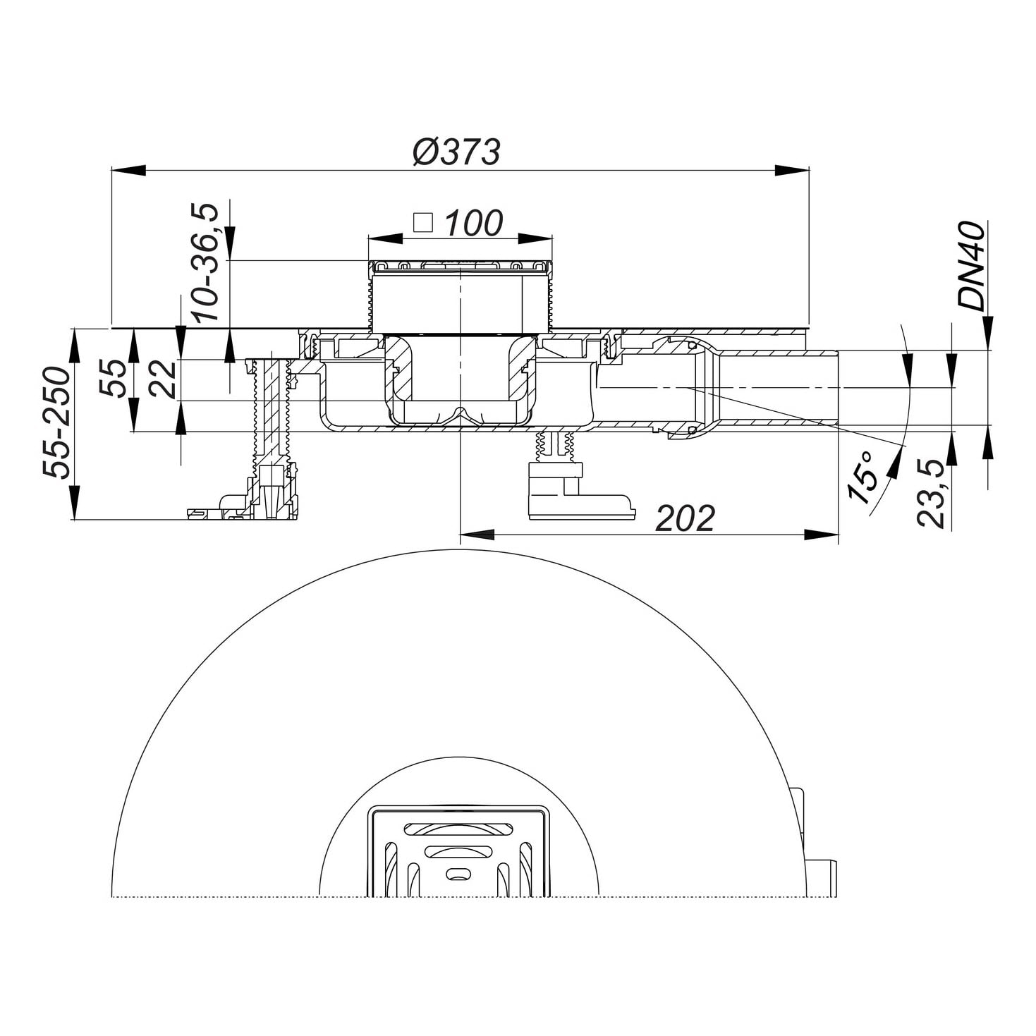 - mit Bauschutzabdeckung und komplett herausnehmbarem, zweiteiligem Geruchs- und Reinigungsverschluss mit 2,2 cm Sperrwasserhöhe