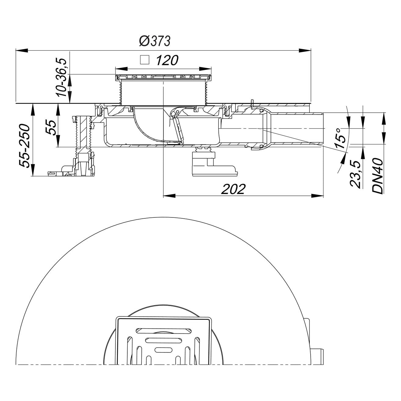 - mit Bauschutzabdeckung und komplett herausnehmbarem, zweiteiligem Geruchs- und Reinigungsverschluss mit 2,2 cm Sperrwasserhöhe