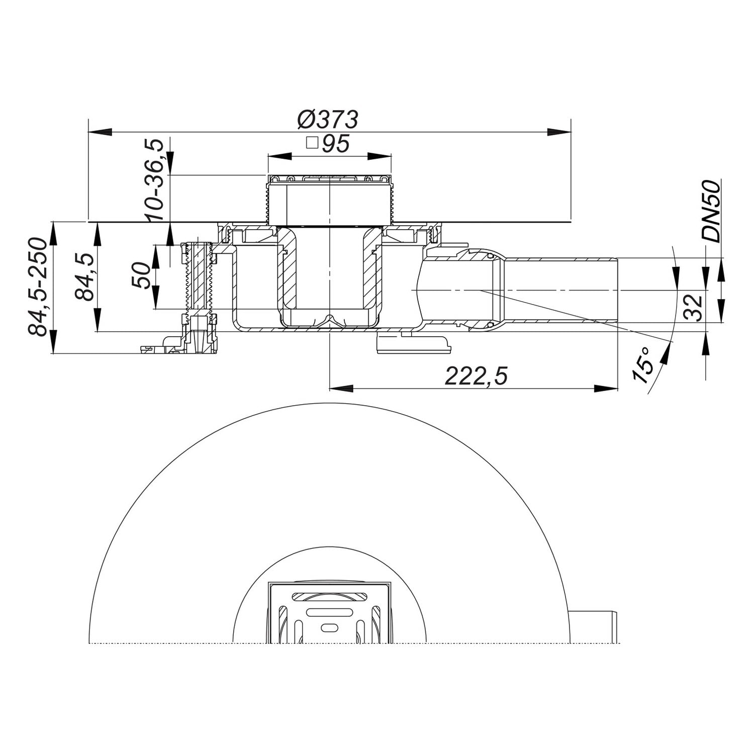 - Ablaufstutzen aus Polypropylen, DN 50 seitlich, mit Kugelgelenk 0-15 Grad verstellbar zum spannungsfreien Anschluss der Abwasserleitung