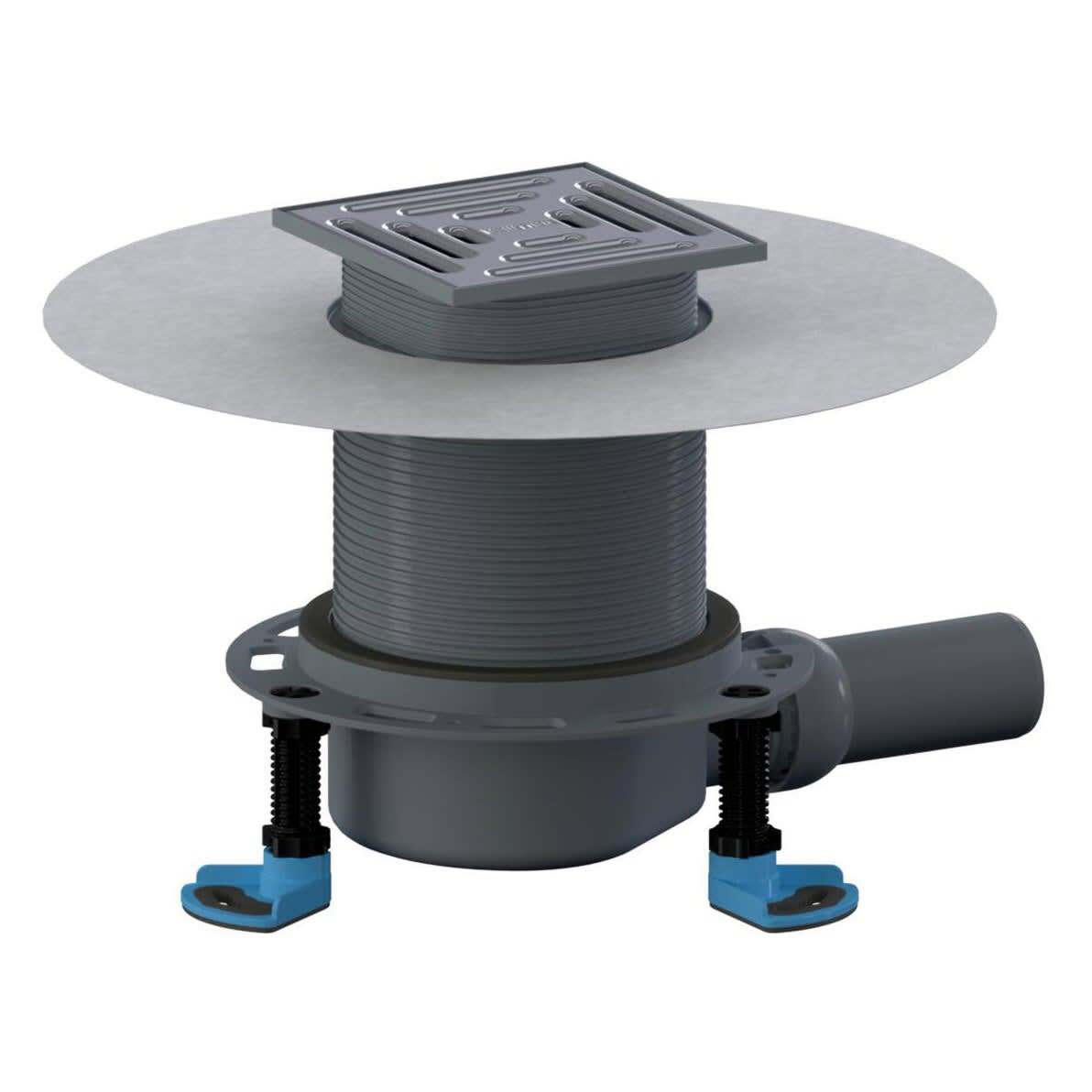 - Bodenablauf nach DIN EN 1253 inklusive 1,9 - 12,5 cm kürzbarem Aufstockelement mit Rückstaudichtung und Aufsatz mit Edelstahlrost im Kunststoffrahmen