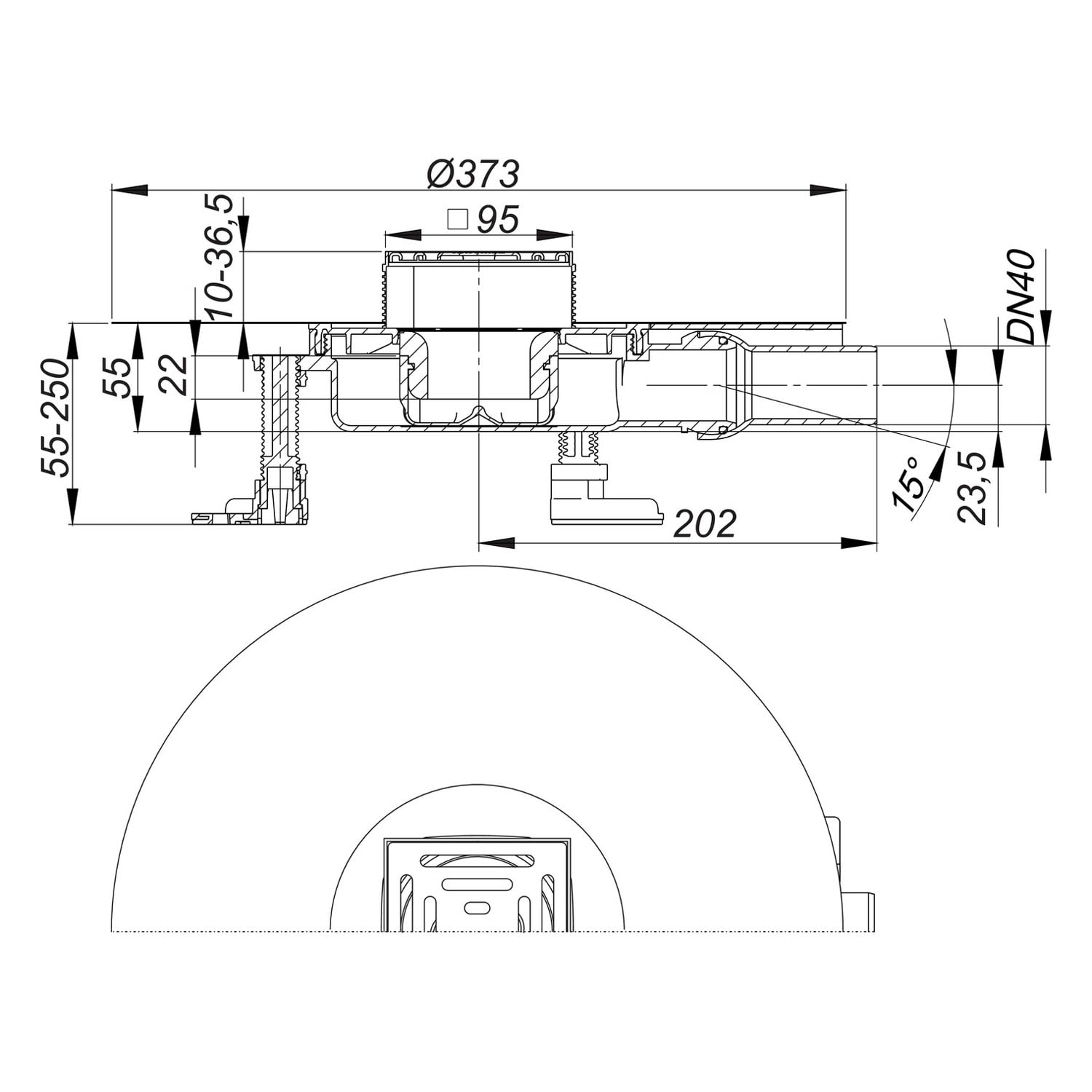 - mit Bauschutzabdeckung und komplett herausnehmbarem, zweiteiligem Geruchs- und Reinigungsverschluss mit 2,2 cm Sperrwasserhöhe