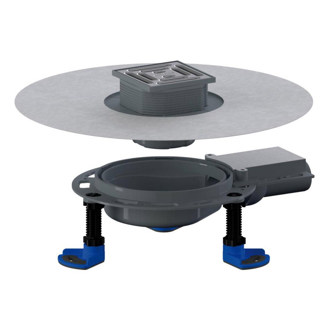 - Bodenablauf inklusive Aufsatz mit Edelstahlrost im Kunststoffrahmen