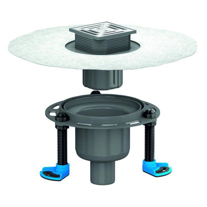 - mit Bauschutzabdeckung und komplett herausnehmbarem, zweiteiligem Geruchs- und Reinigungsverschluss mit 5 cm Sperrwasserhöhe