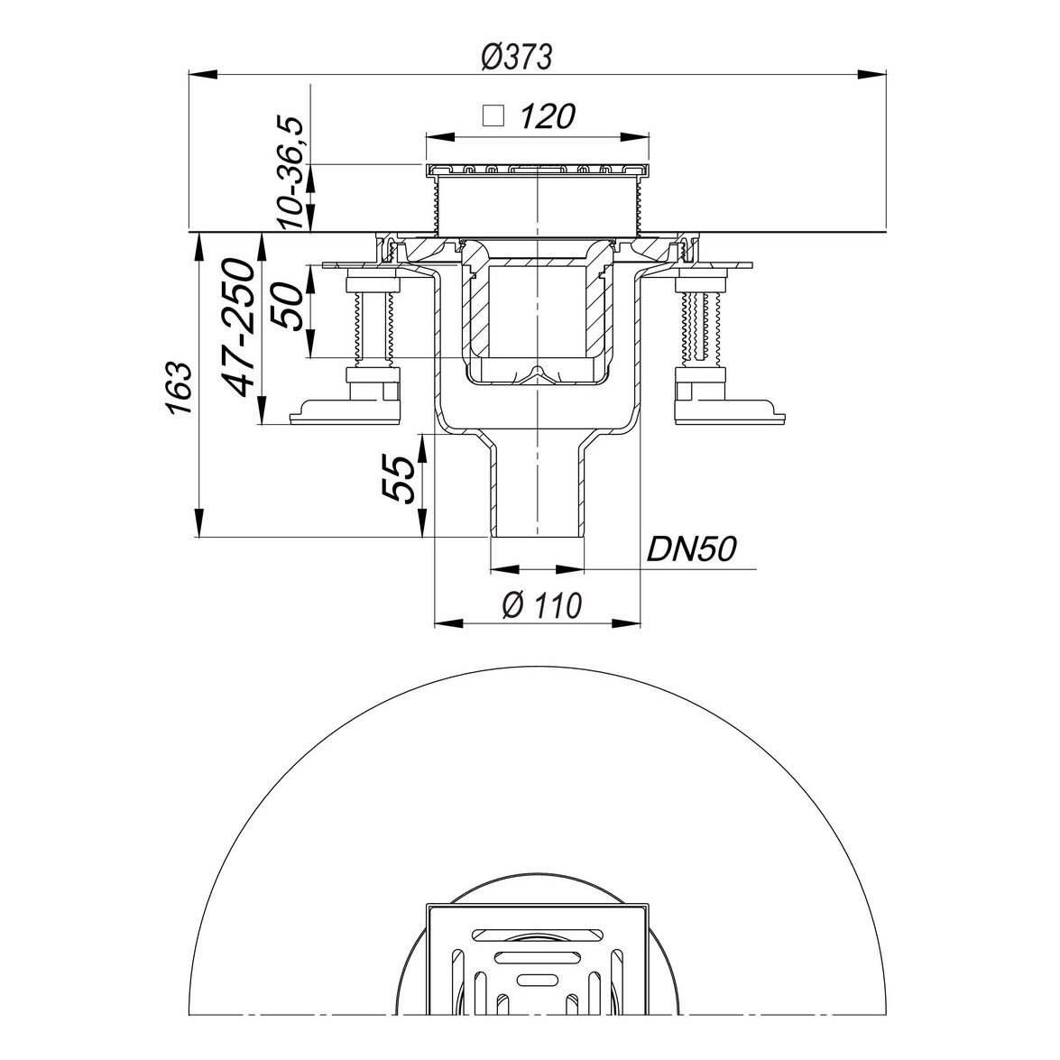 - mit Bauschutzabdeckung und komplett herausnehmbarem, zweiteiligem Geruchs- und Reinigungsverschluss mit 5 cm Sperrwasserhöhe