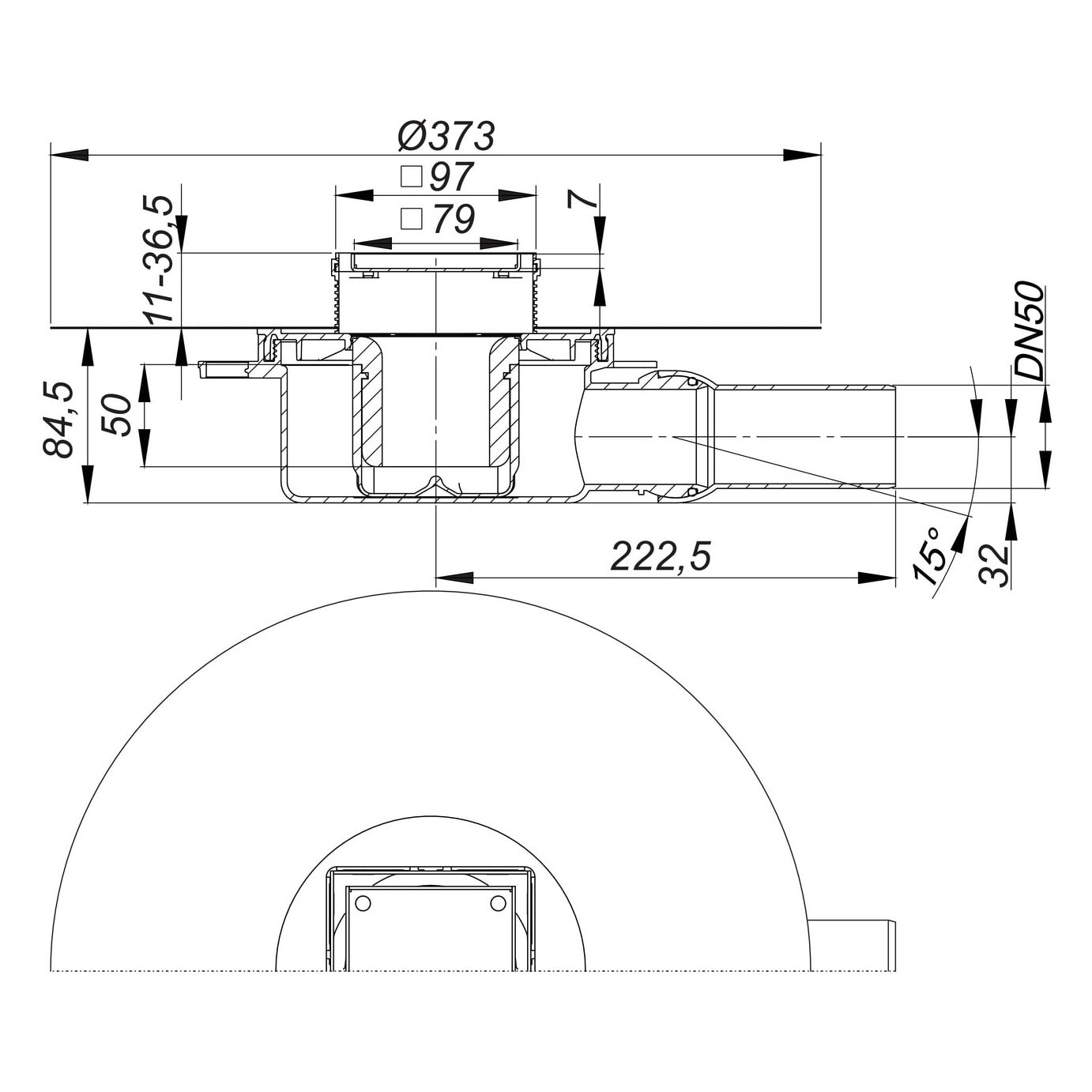 - mit Bauschutzabdeckung und komplett herausnehmbarem, zweiteiligem Geruchs- und Reinigungsverschluss mit 5 cm Sperrwasserhöhe