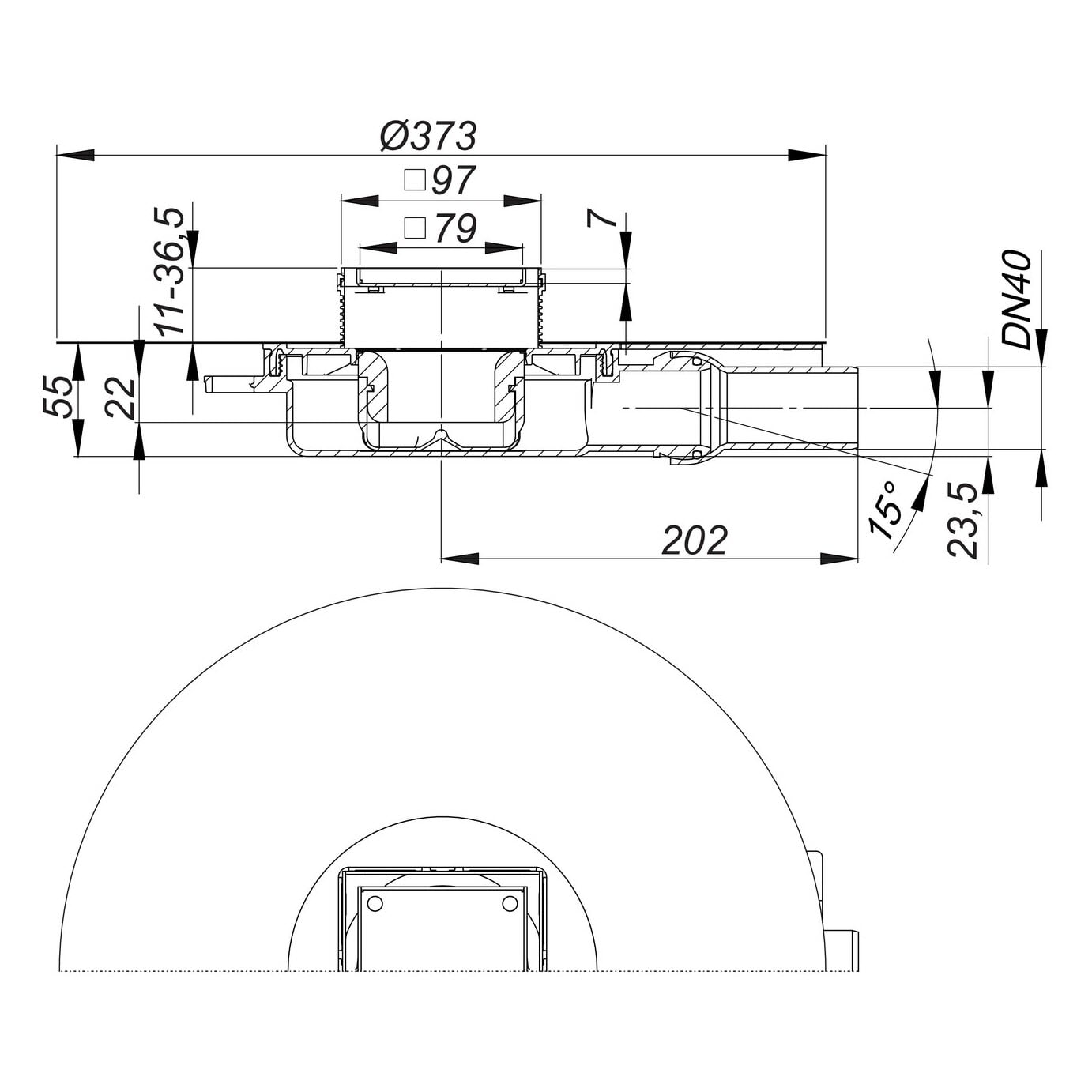 - mit Bauschutzabdeckung und komplett herausnehmbarem, zweiteiligem Geruchs- und Reinigungsverschluss mit 2,2 cm Sperrwasserhöhe