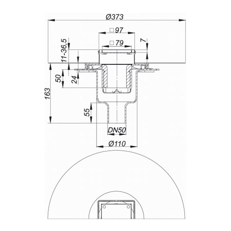 - Bodenablauf nach DIN EN 1253 inklusive Aufsatz mit Edelstahlrahmen zum Befliesen mit individuellen Bodenbelägen