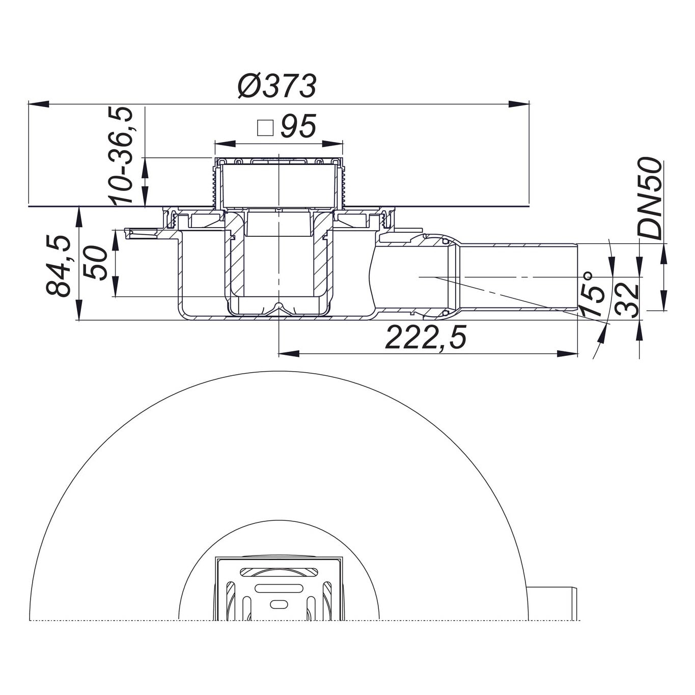 - mit Bauschutzabdeckung und komplett herausnehmbarem, zweiteiligem Geruchs- und Reinigungsverschluss mit 5 cm Sperrwasserhöhe
