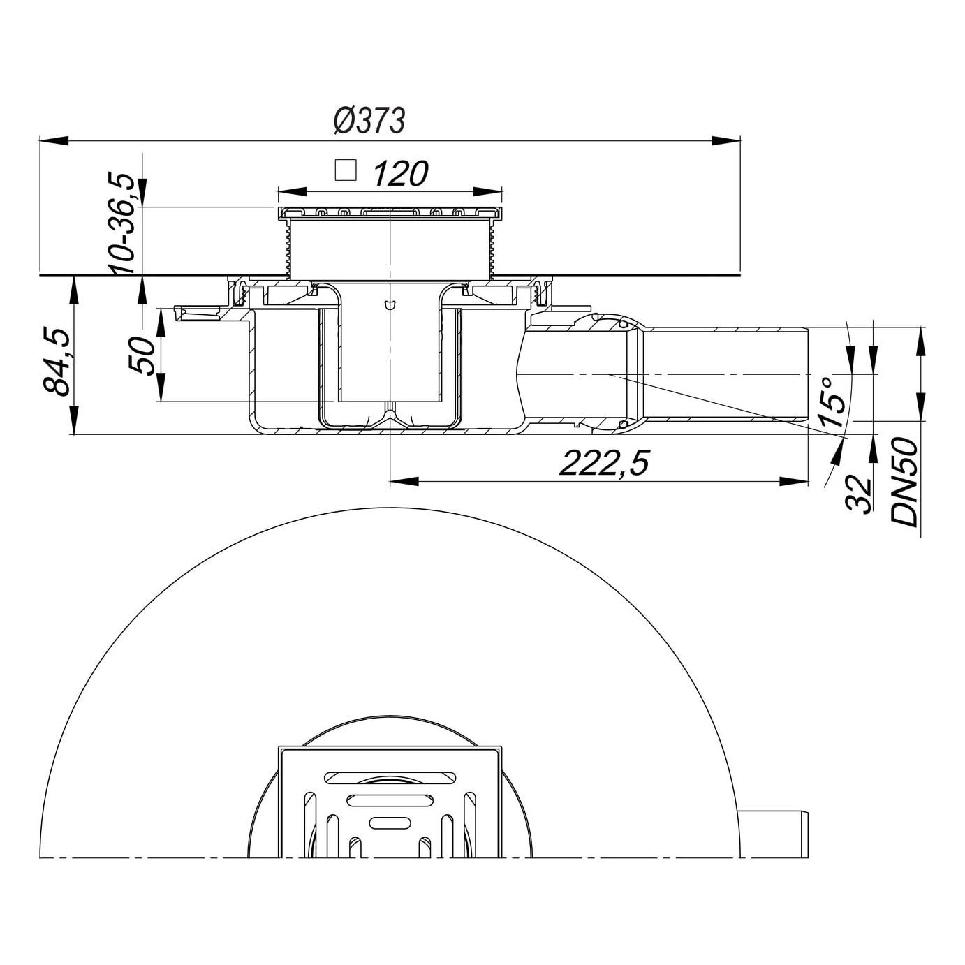- mit Bauschutzabdeckung und komplett herausnehmbarem, zweiteiligem Geruchs- und Reinigungsverschluss mit 5 cm Sperrwasserhöhe