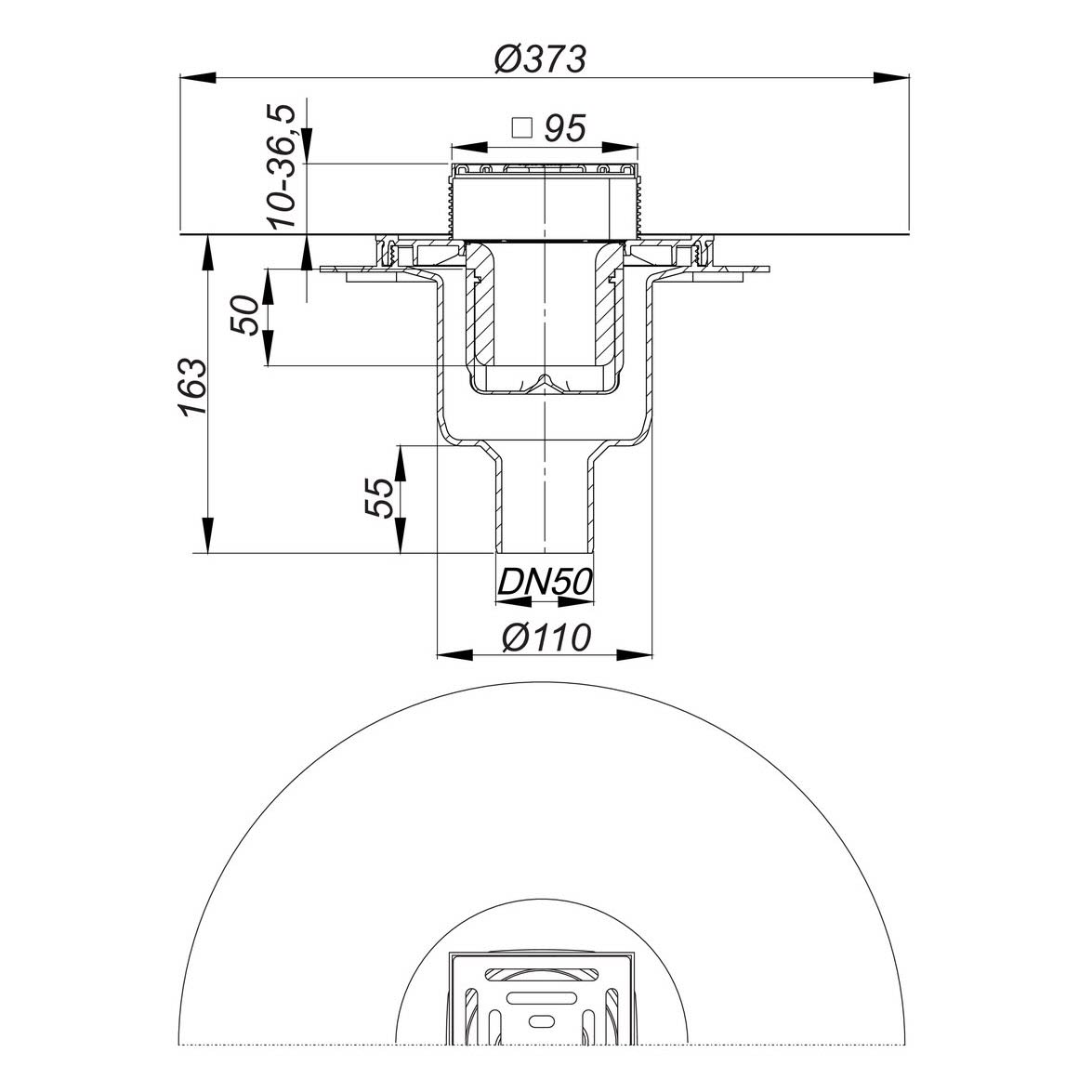 - mit Bauschutzabdeckung und komplett herausnehmbarem, zweiteiligem Geruchs- und Reinigungsverschluss mit 5 cm Sperrwasserhöhe