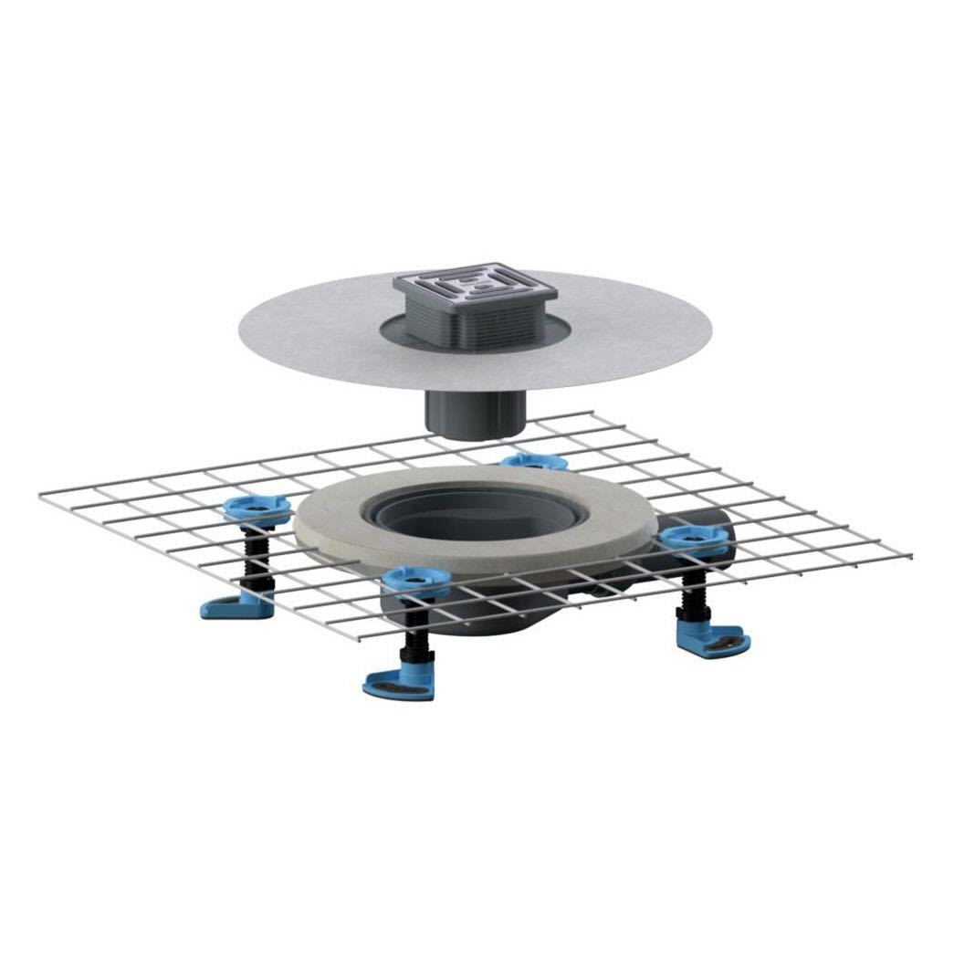 - mit Bauschutzabdeckung und komplett herausnehmbarem, zweiteiligem Geruchs- und Reinigungsverschluss mit 5 cm Sperrwasserhöhe