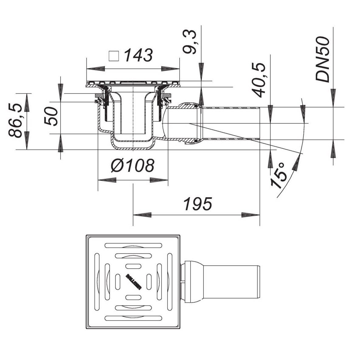 Dallmer Duschablauf 48 KE, DN 50, 10 x 10 cm