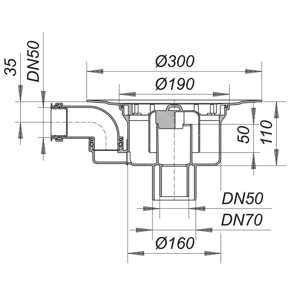 Dallmer Ablaufgehäuse 61/1 HT, Zulauf DN 50, DN 50/DN 70