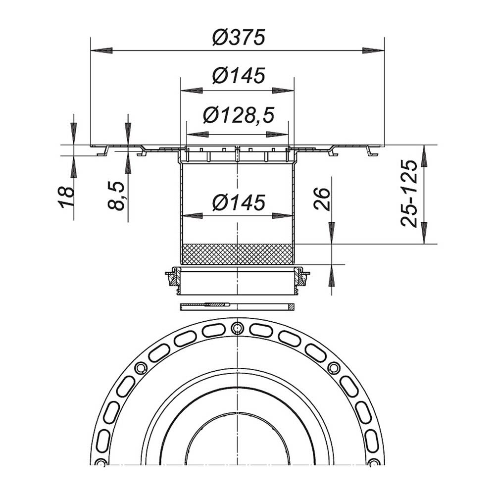 Alle Aufsätze zu CeraDrain S 15/TistoDrain S 15 sind im Aufstockelement stufenlos verstellbar.