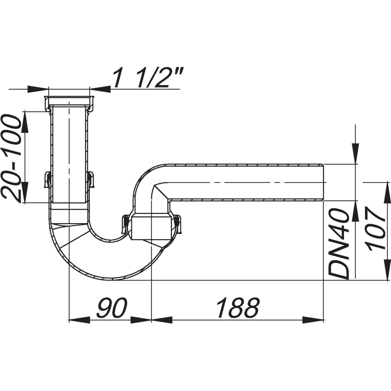 Dallmer Röhren-Siphon 100/0, 1 1/2" x DN 40