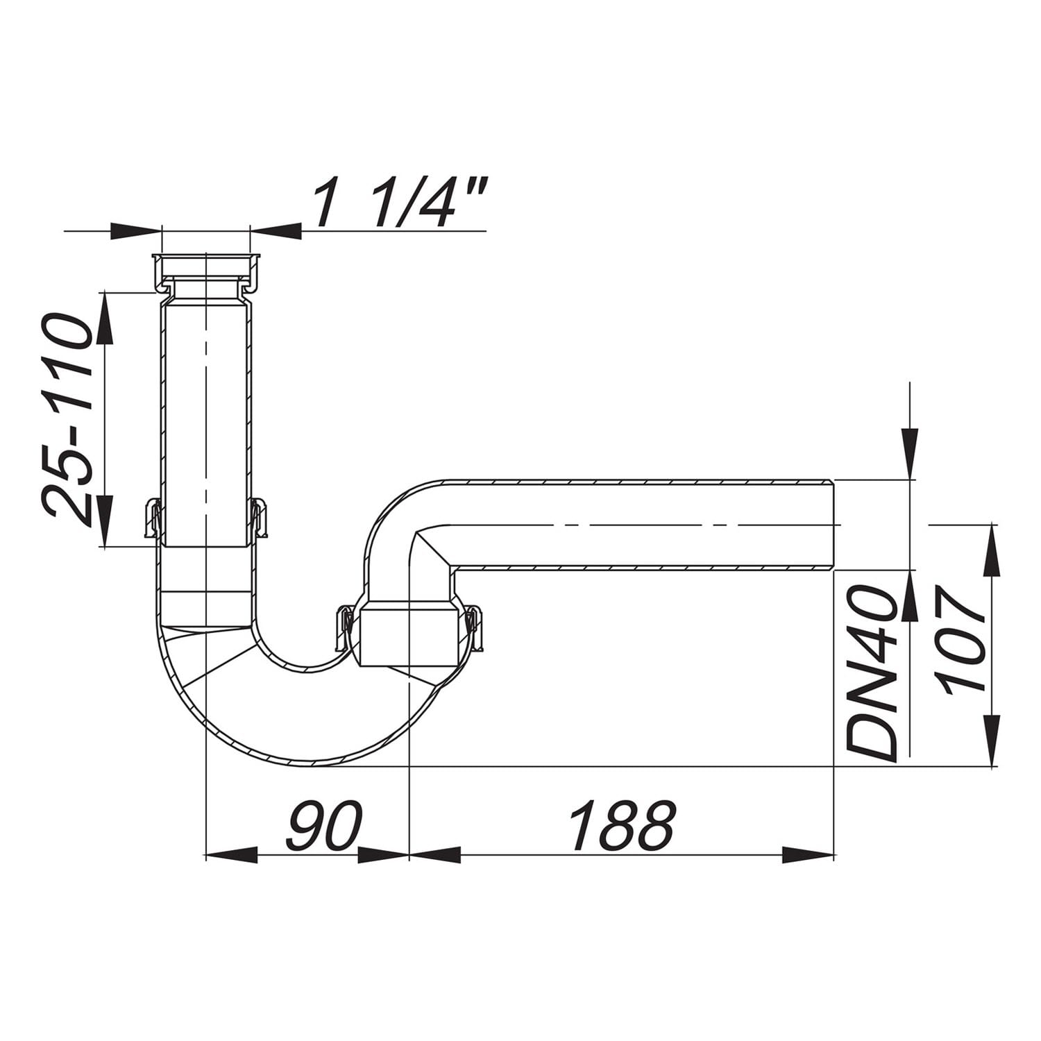 Dallmer Röhren-Siphon 100/0, 1 1/4" x DN 40