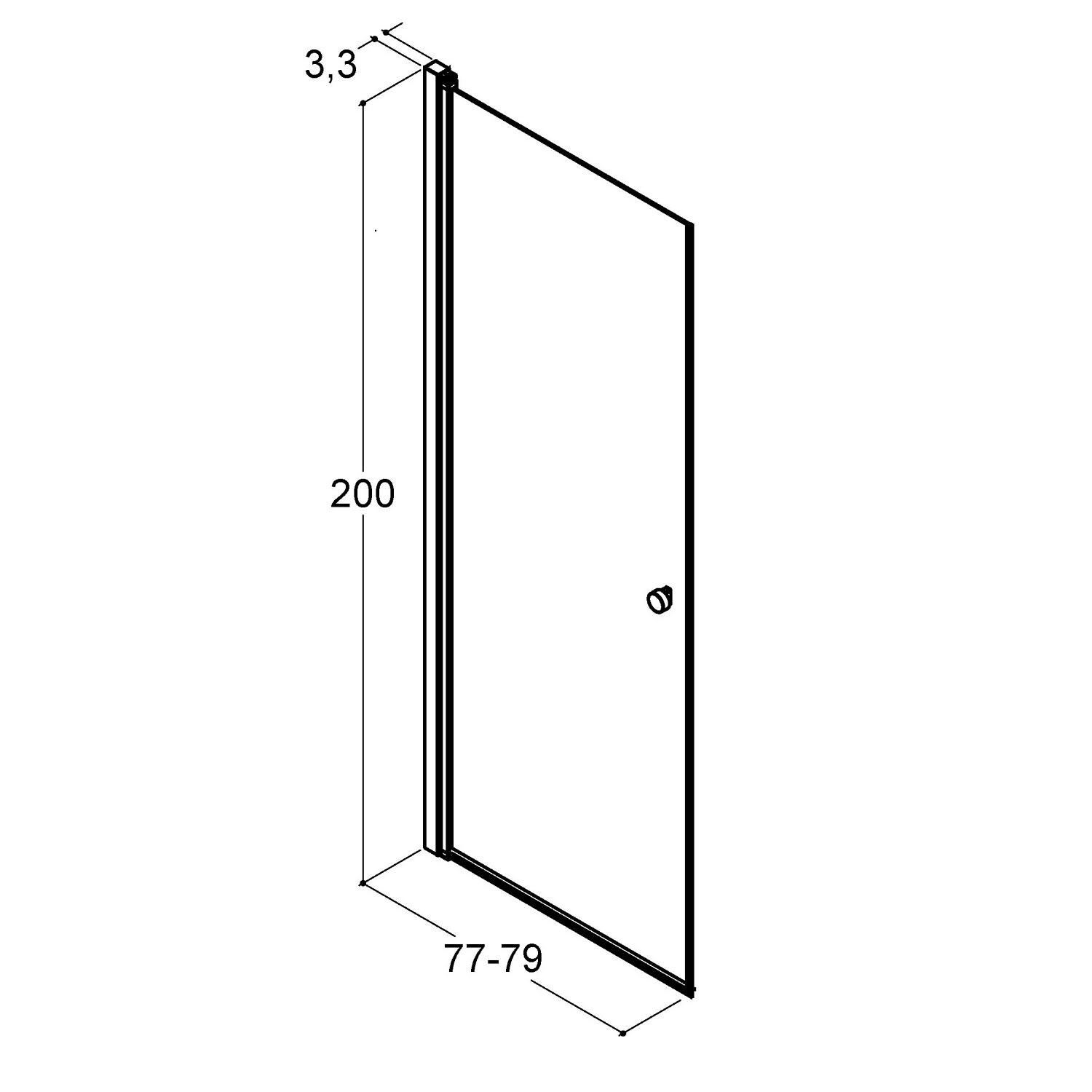 - als Nischentür ohne Wandprofil: 77 - 79 cm
