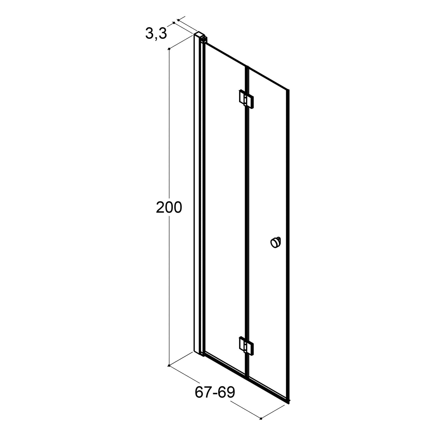 - als Nischentür ohne Wandprofil: 67 - 69 cm