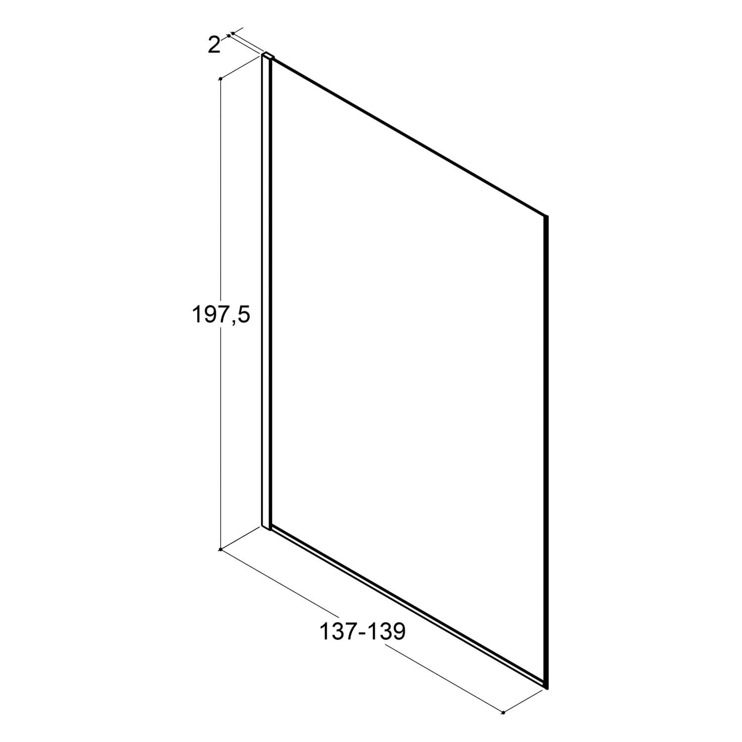 - als Walk-In Wand: 137 - 139 cm