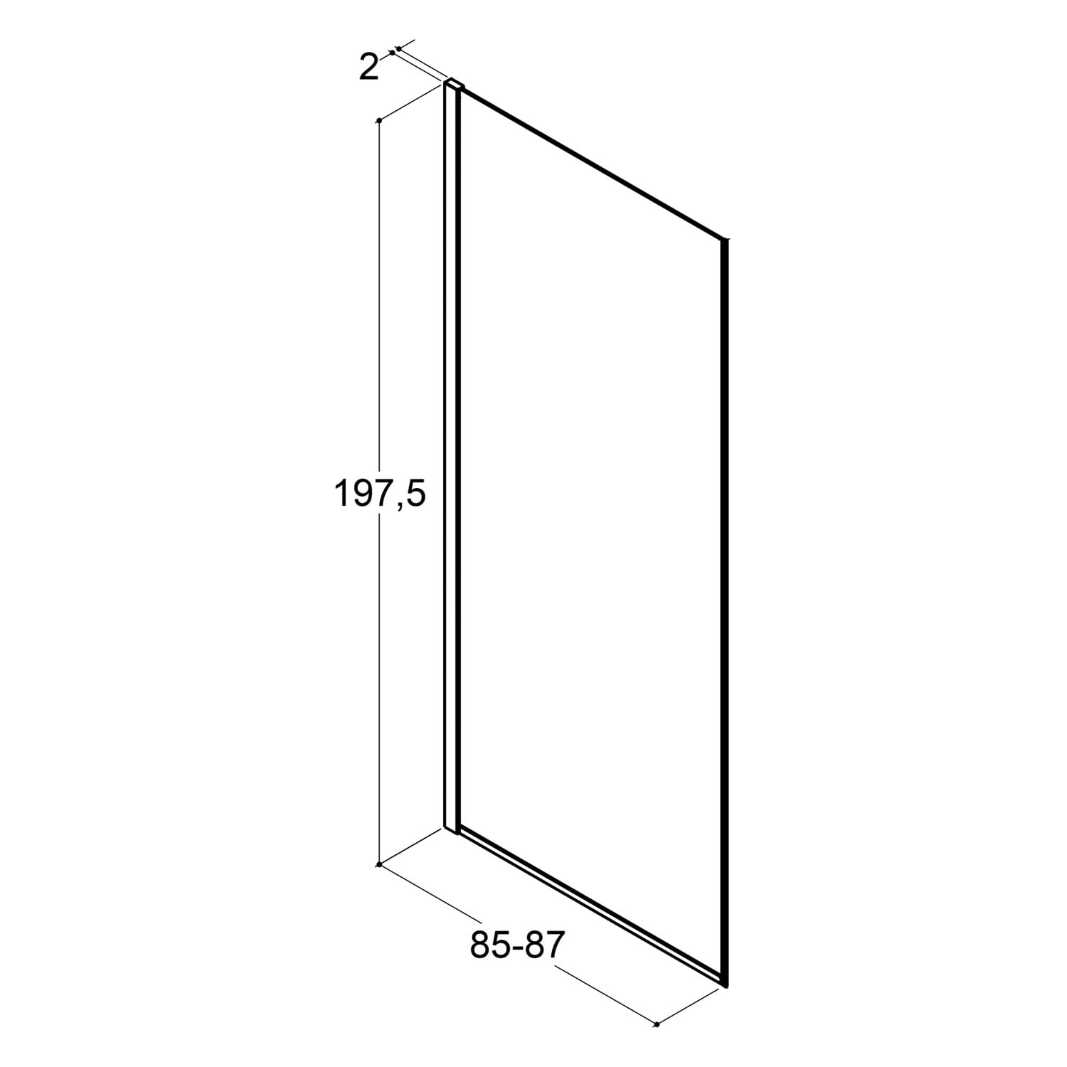 - als Walk-In Wand: 85 - 87 cm
