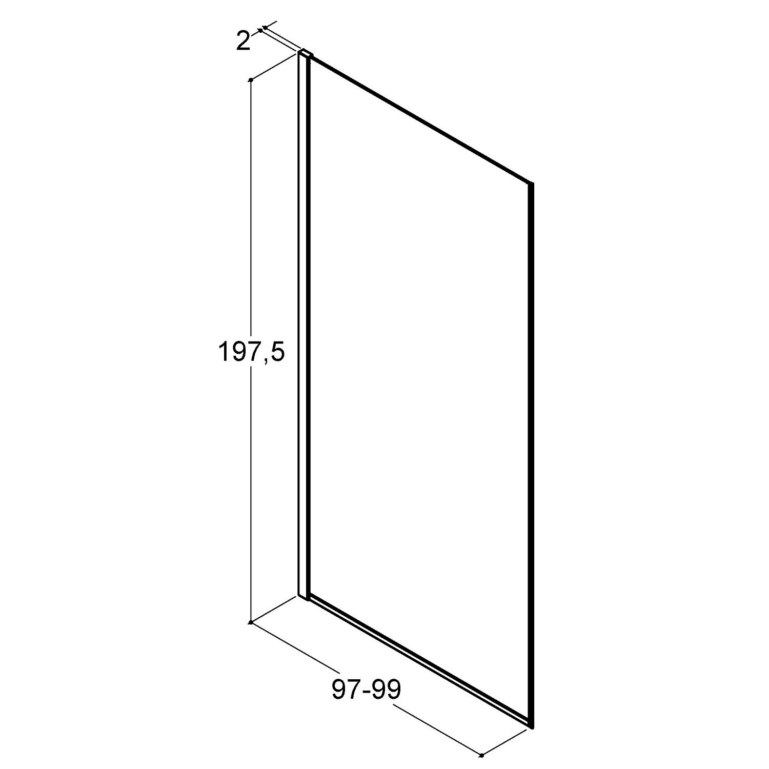 - als Walk-In Wand: 97 - 99 cm