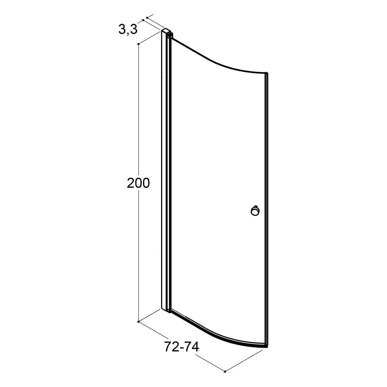 Dansani Match halbrunde Drehtür 74 x 200 cm mit Eisglas