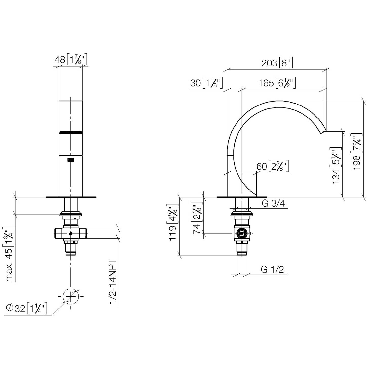 Dornbracht CYO Waschtisch-Stand-Auslauf ohne Ablaufgarnitur, Ausladung 16,7 cm