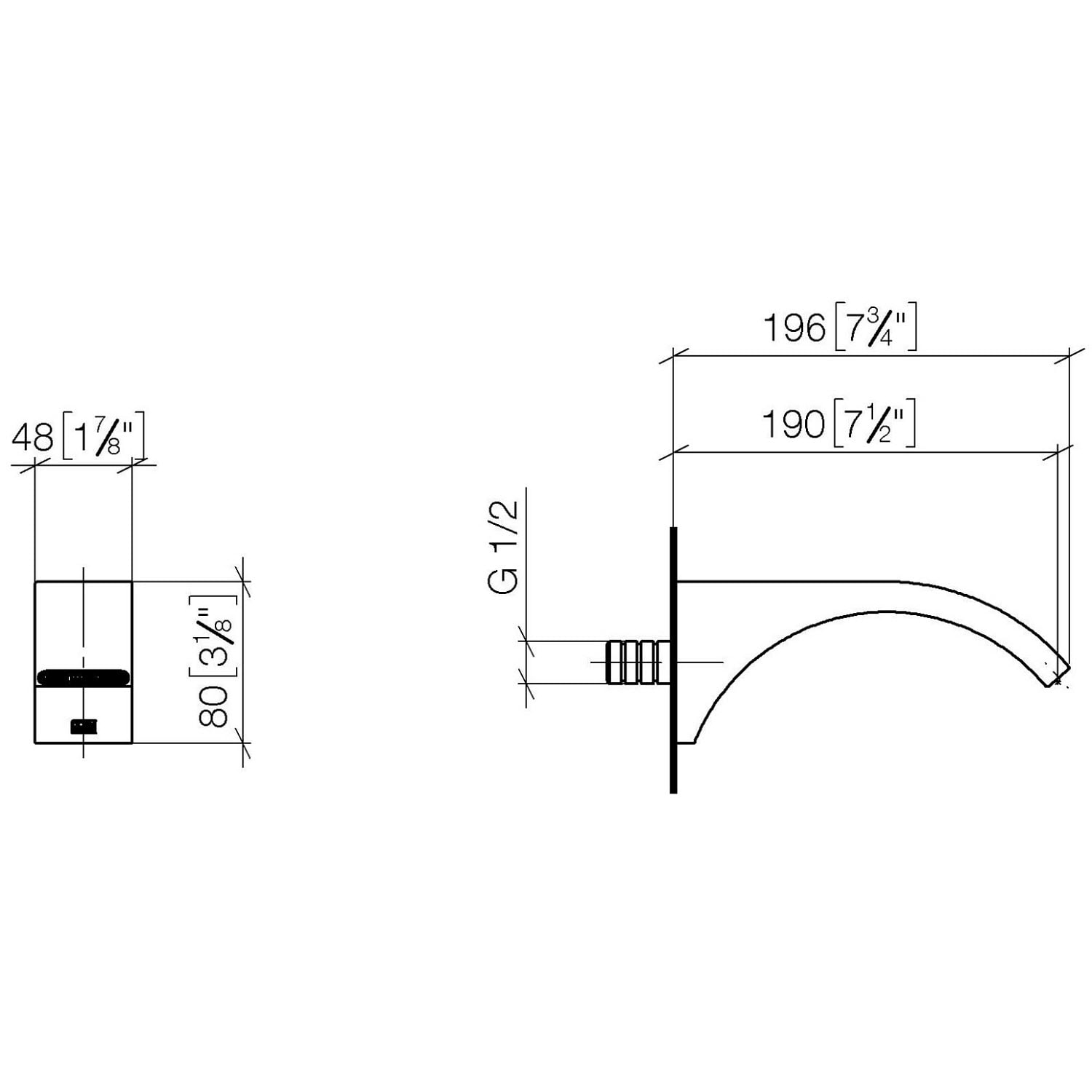 Dornbracht CYO Waschtisch-Wand-Auslauf ohne Ablaufgarnitur, Ausladung 19 cm