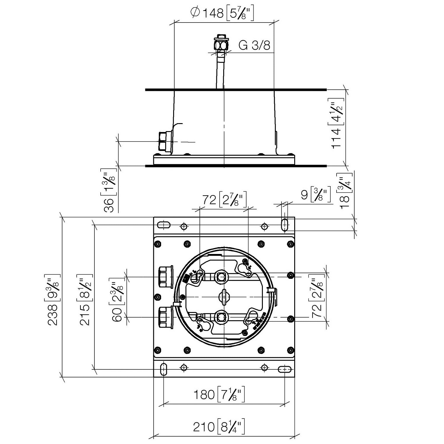 Dornbracht UP-Deckeneinbaukasten mit Deckenanbindung